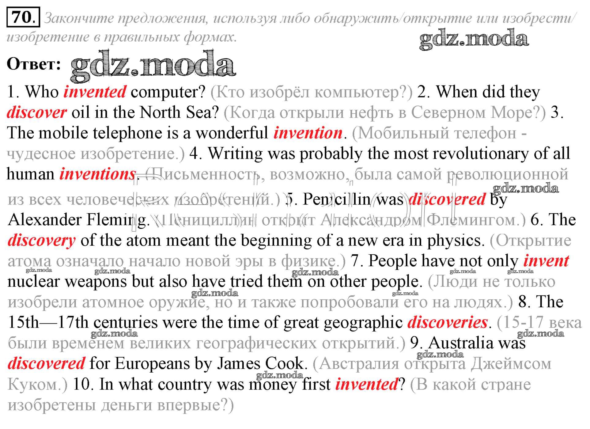 ГДЗ решение к заданию № 70 Английский язык 8 класс Афанасьева (Углубленный уровень) Просвещение 2014 Углубленный уровень ФГОС бесплатно на гдз.мода!