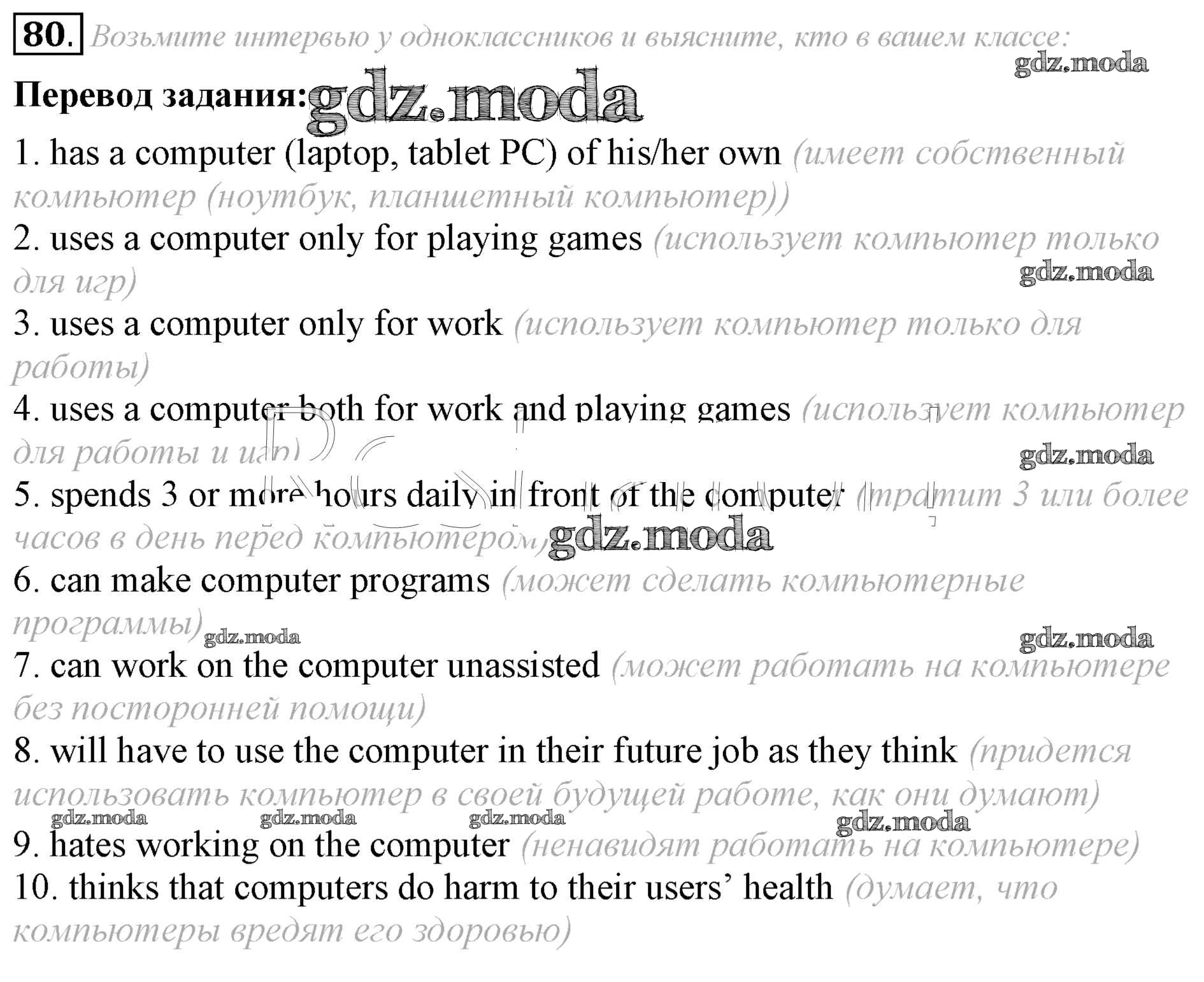 ГДЗ решение к заданию № 80 Английский язык 8 класс Афанасьева (Углубленный уровень) Просвещение 2014 Углубленный уровень ФГОС бесплатно на гдз.мода!