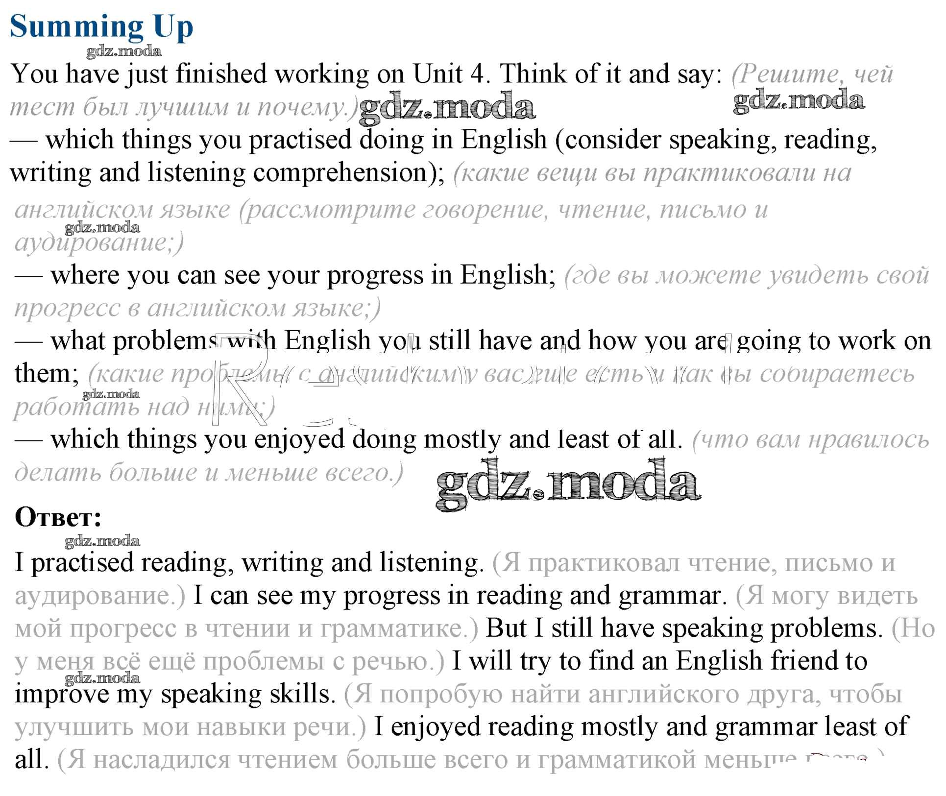 ГДЗ решение к заданию № Summing Up Английский язык 8 класс Афанасьева (Углубленный уровень) Просвещение 2014 Углубленный уровень ФГОС бесплатно на гдз.мода!