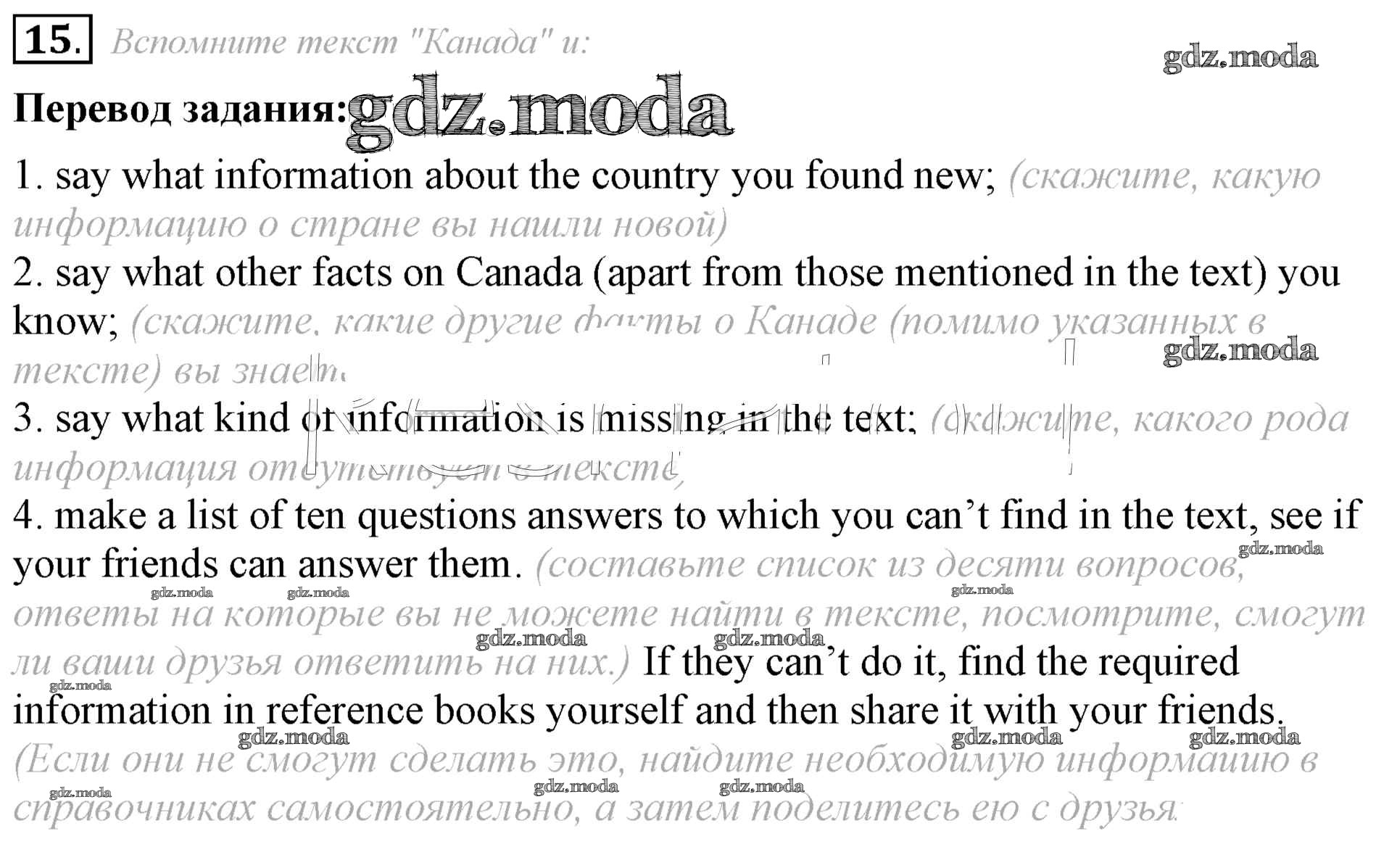 ГДЗ решение к заданию № 15 Английский язык 8 класс Афанасьева (Углубленный уровень) Просвещение 2014 Углубленный уровень ФГОС бесплатно на гдз.мода!