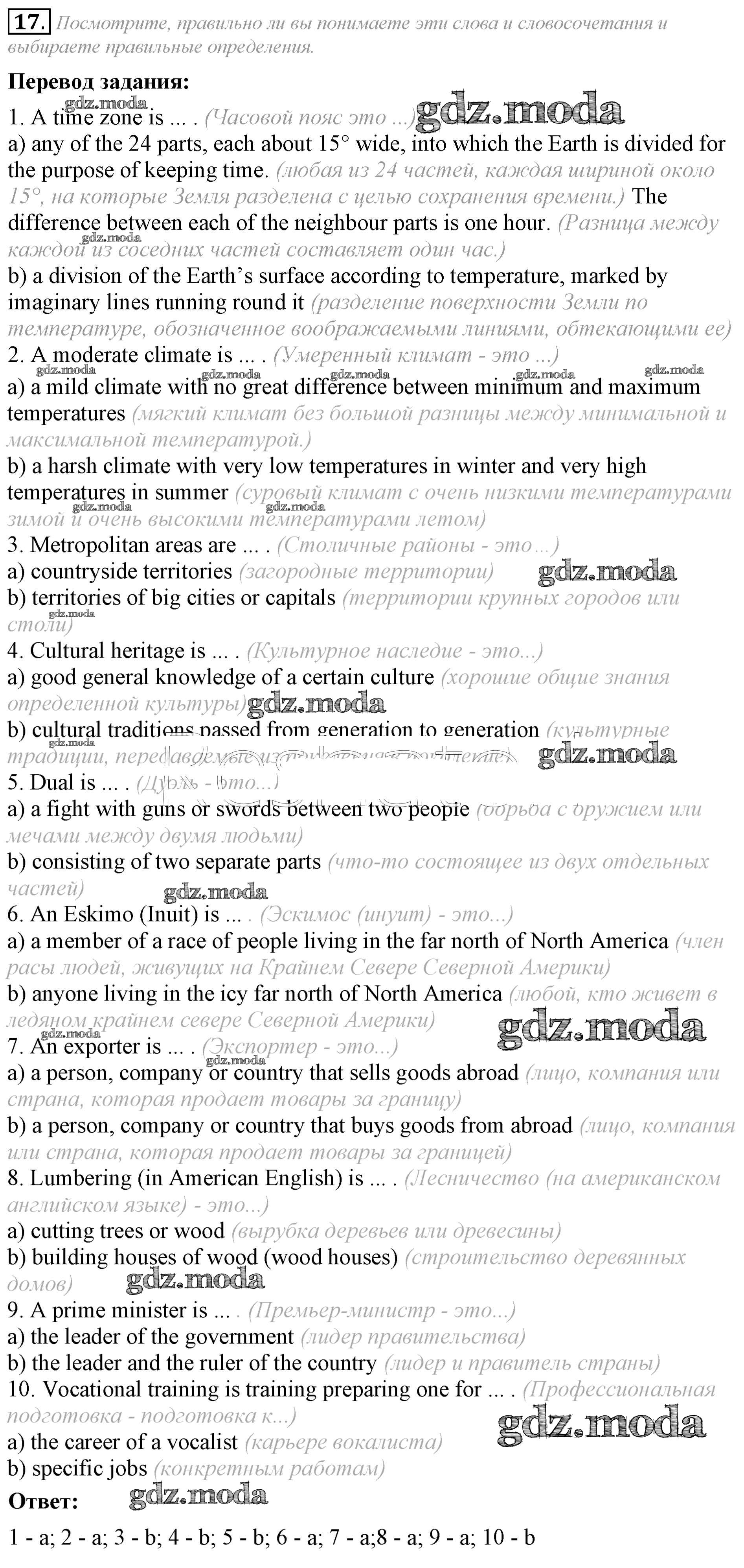ГДЗ решение к заданию № 17 Английский язык 8 класс Афанасьева (Углубленный уровень) Просвещение 2014 Углубленный уровень ФГОС бесплатно на гдз.мода!
