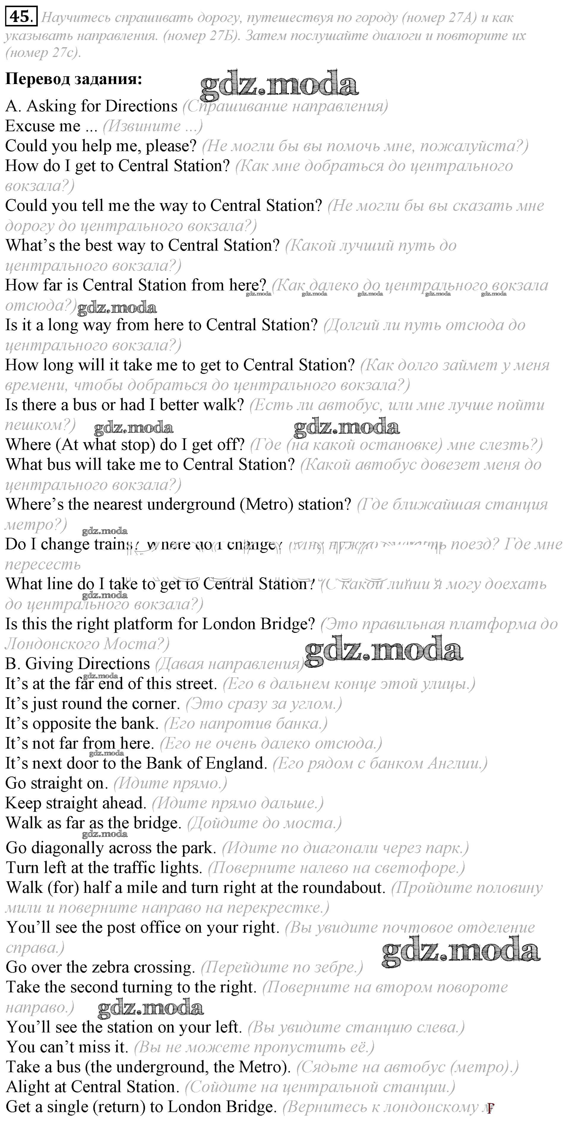ГДЗ решение к заданию № 45 Английский язык 8 класс Афанасьева (Углубленный уровень) Просвещение 2014 Углубленный уровень ФГОС бесплатно на гдз.мода!