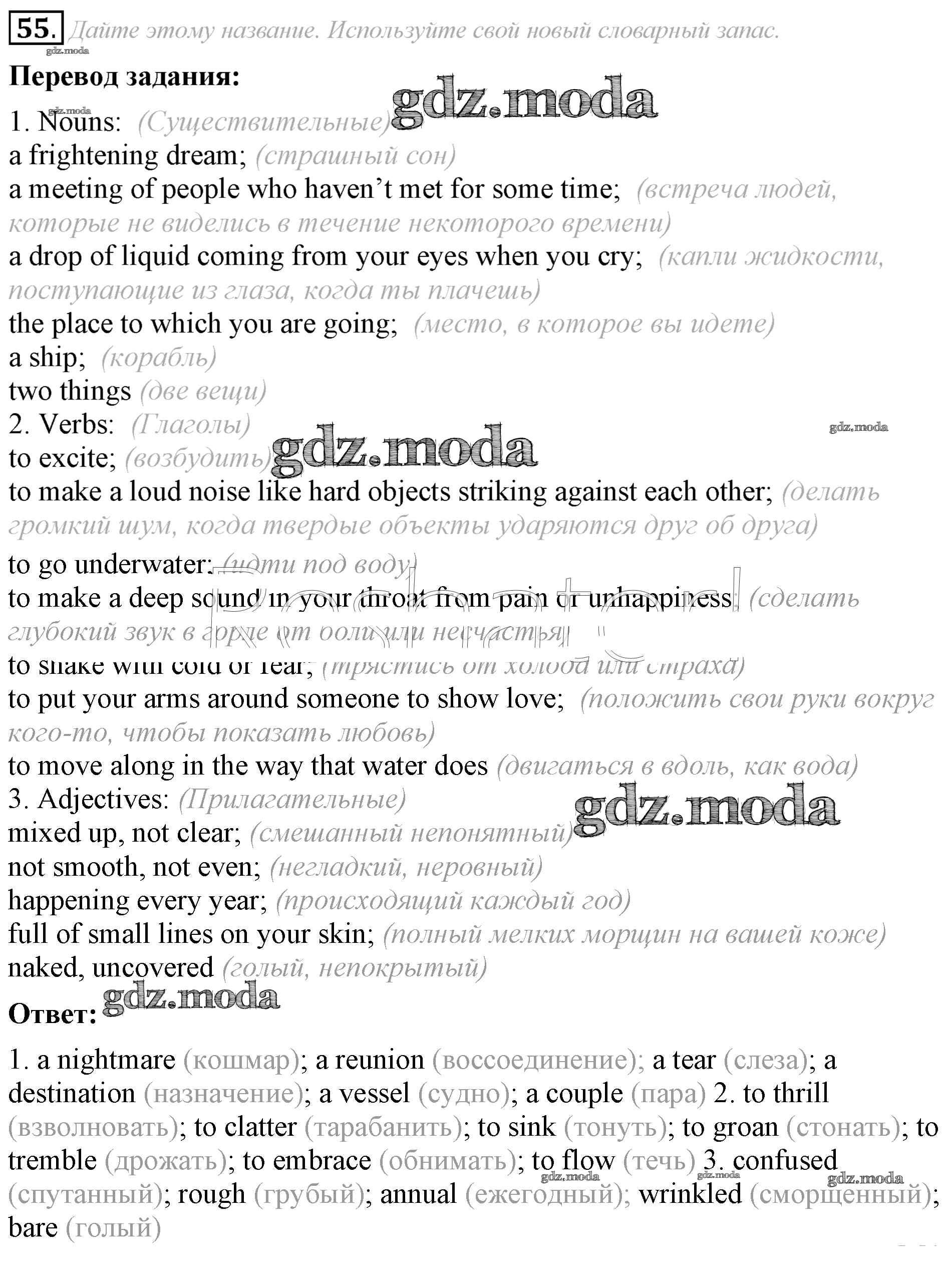 ГДЗ решение к заданию № 55 Английский язык 8 класс Афанасьева (Углубленный уровень) Просвещение 2014 Углубленный уровень ФГОС бесплатно на гдз.мода!