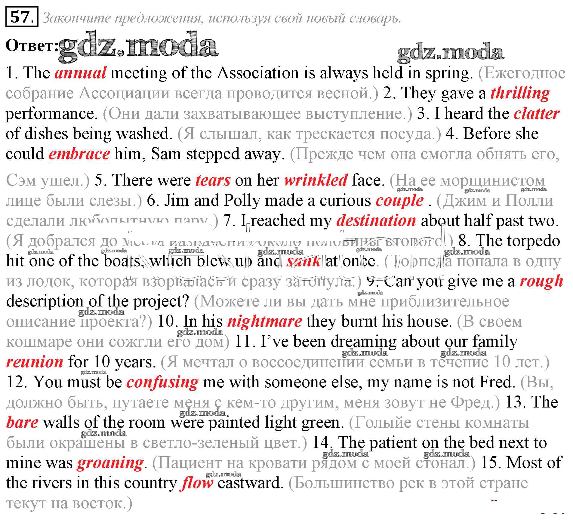 ГДЗ решение к заданию № 57 Английский язык 8 класс Афанасьева (Углубленный уровень) Просвещение 2014 Углубленный уровень ФГОС бесплатно на гдз.мода!