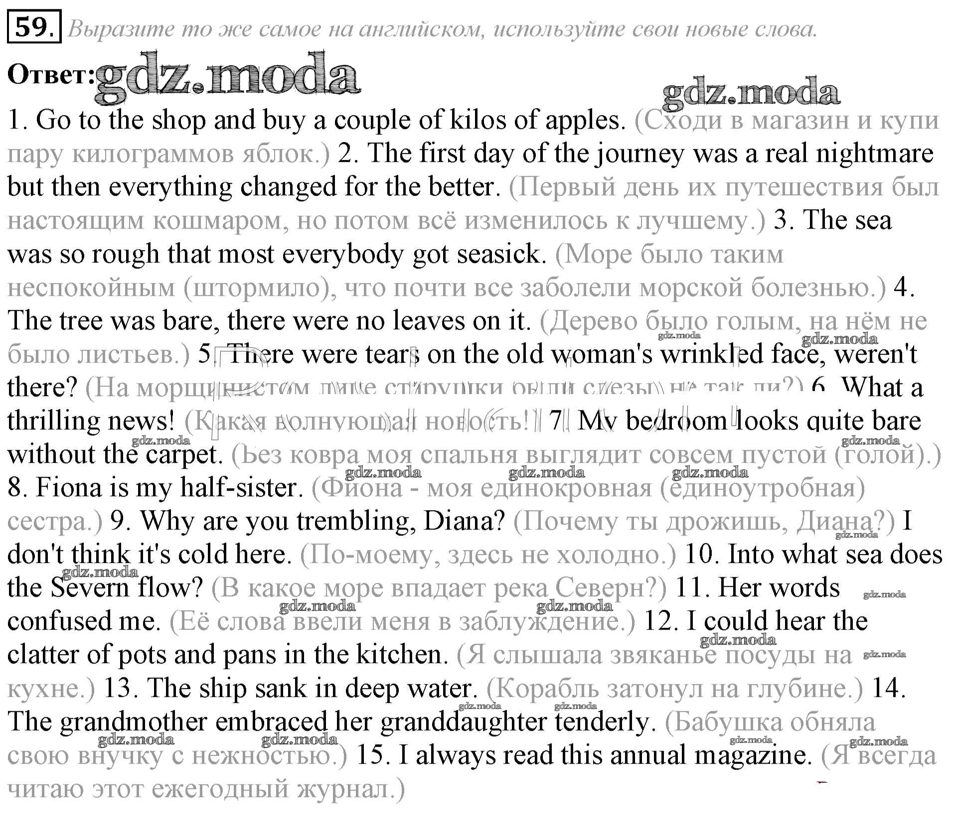 ГДЗ решение к заданию № 59 Английский язык 8 класс Афанасьева (Углубленный уровень) Просвещение 2014 Углубленный уровень ФГОС бесплатно на гдз.мода!