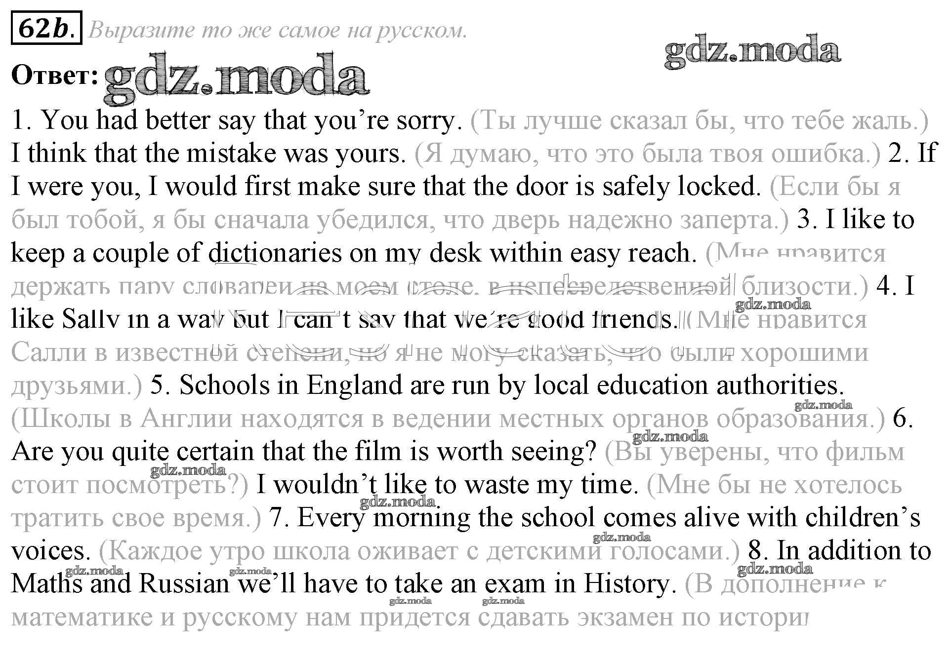 ГДЗ решение к заданию № 62b Английский язык 8 класс Афанасьева (Углубленный уровень) Просвещение 2014 Углубленный уровень ФГОС бесплатно на гдз.мода!