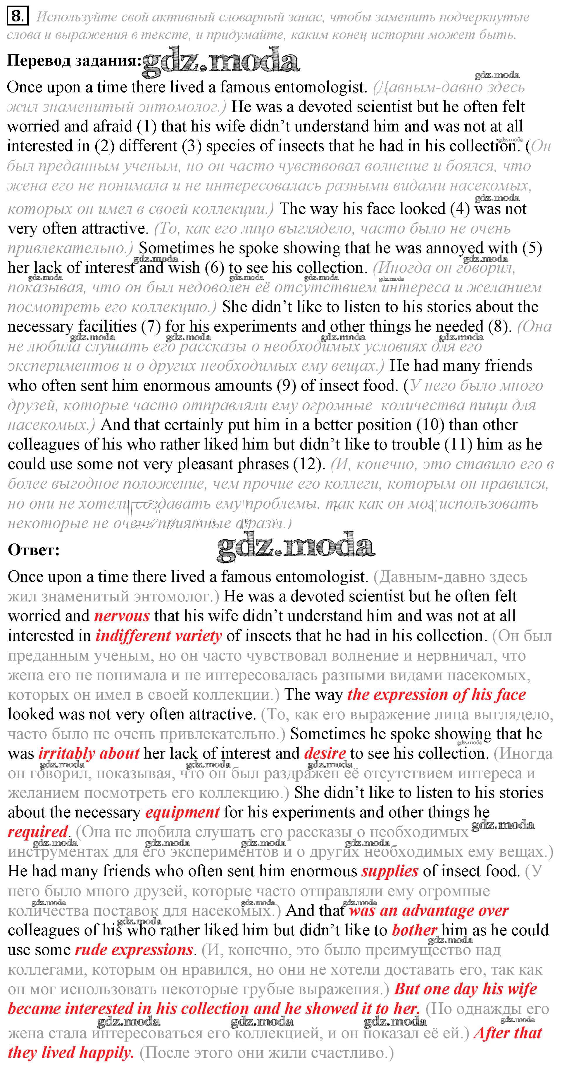 ГДЗ решение к заданию № 8 Английский язык 8 класс Афанасьева (Углубленный уровень) Просвещение 2014 Углубленный уровень ФГОС бесплатно на гдз.мода!