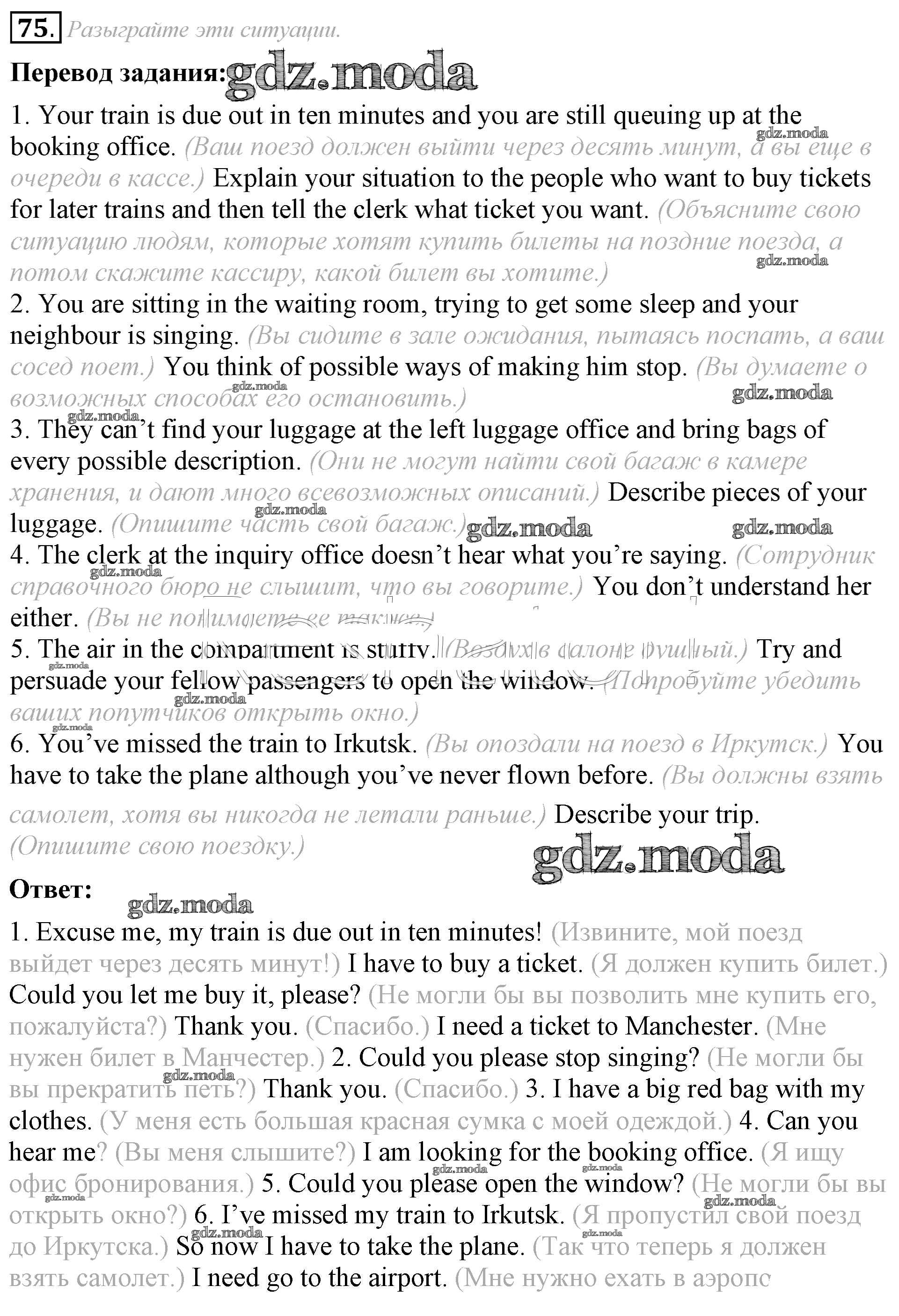 ГДЗ решение к заданию № 75 Английский язык 8 класс Афанасьева (Углубленный уровень) Просвещение 2014 Углубленный уровень ФГОС бесплатно на гдз.мода!
