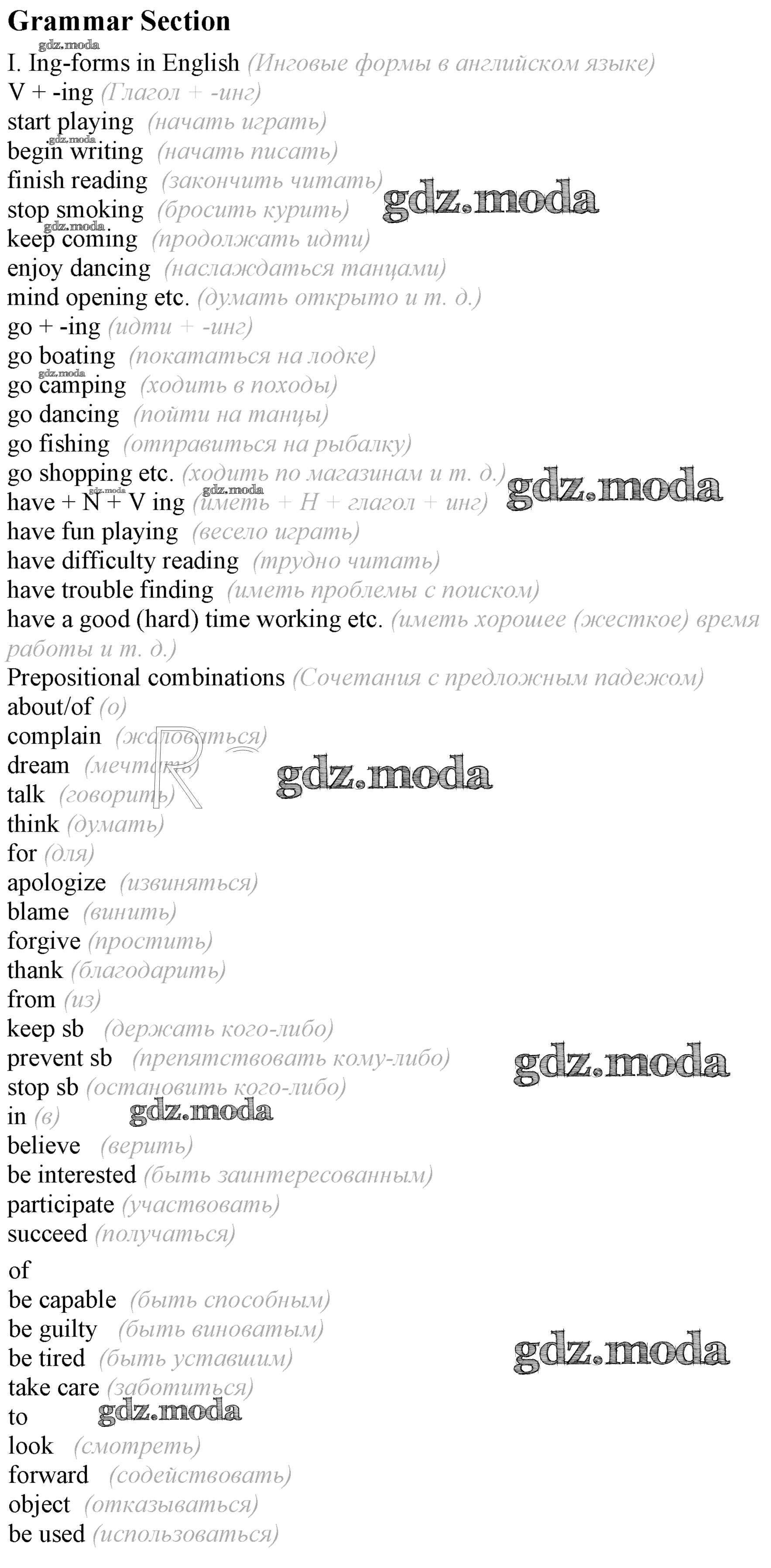 ГДЗ решение к заданию № Grammar section Английский язык 8 класс Афанасьева (Углубленный уровень) Просвещение 2014 Углубленный уровень ФГОС бесплатно на гдз.мода!