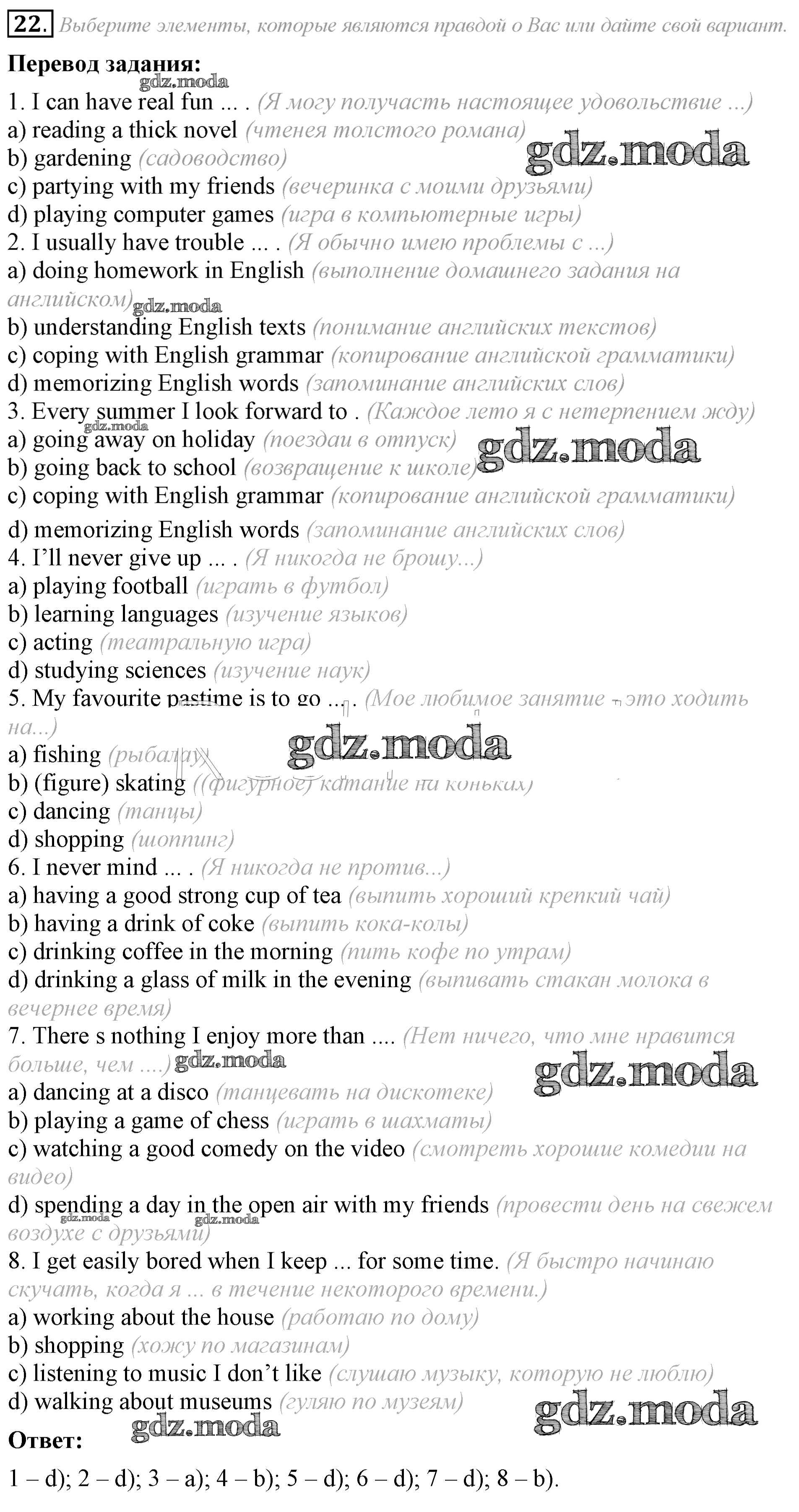 ГДЗ решение к заданию № 22 Английский язык 8 класс Афанасьева (Углубленный уровень) Просвещение 2014 Углубленный уровень ФГОС бесплатно на гдз.мода!