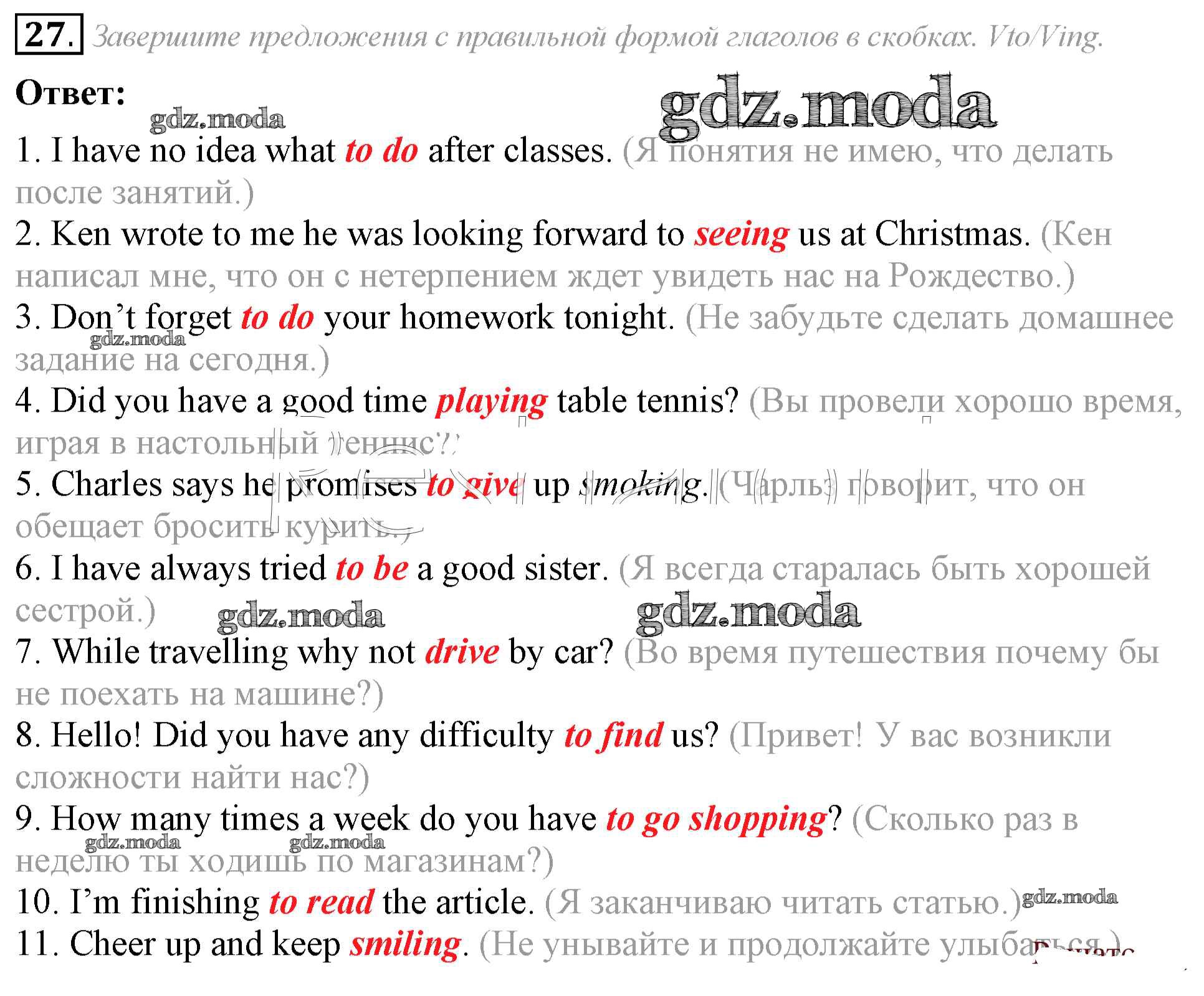 ГДЗ решение к заданию № 27 Английский язык 8 класс Афанасьева (Углубленный уровень) Просвещение 2014 Углубленный уровень ФГОС бесплатно на гдз.мода!