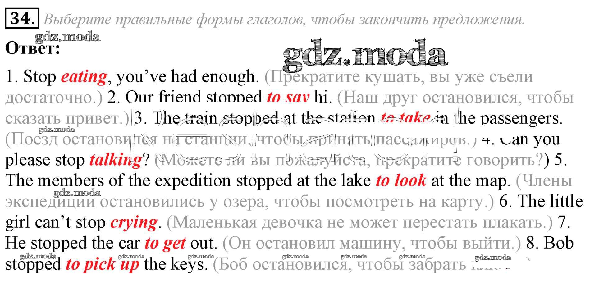 ГДЗ решение к заданию № 34 Английский язык 8 класс Афанасьева (Углубленный уровень) Просвещение 2014 Углубленный уровень ФГОС бесплатно на гдз.мода!
