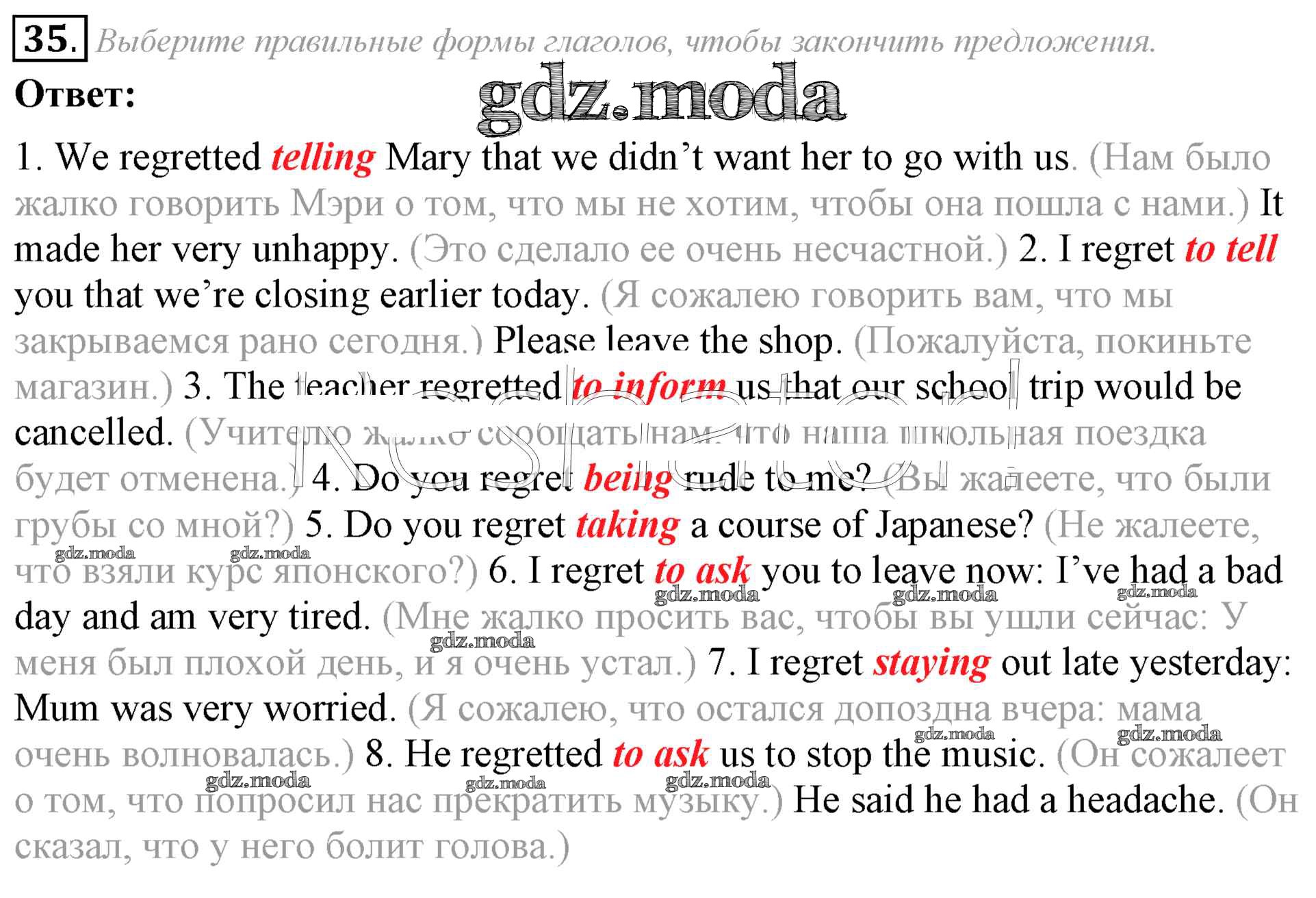 ГДЗ решение к заданию № 35 Английский язык 8 класс Афанасьева (Углубленный уровень) Просвещение 2014 Углубленный уровень ФГОС бесплатно на гдз.мода!