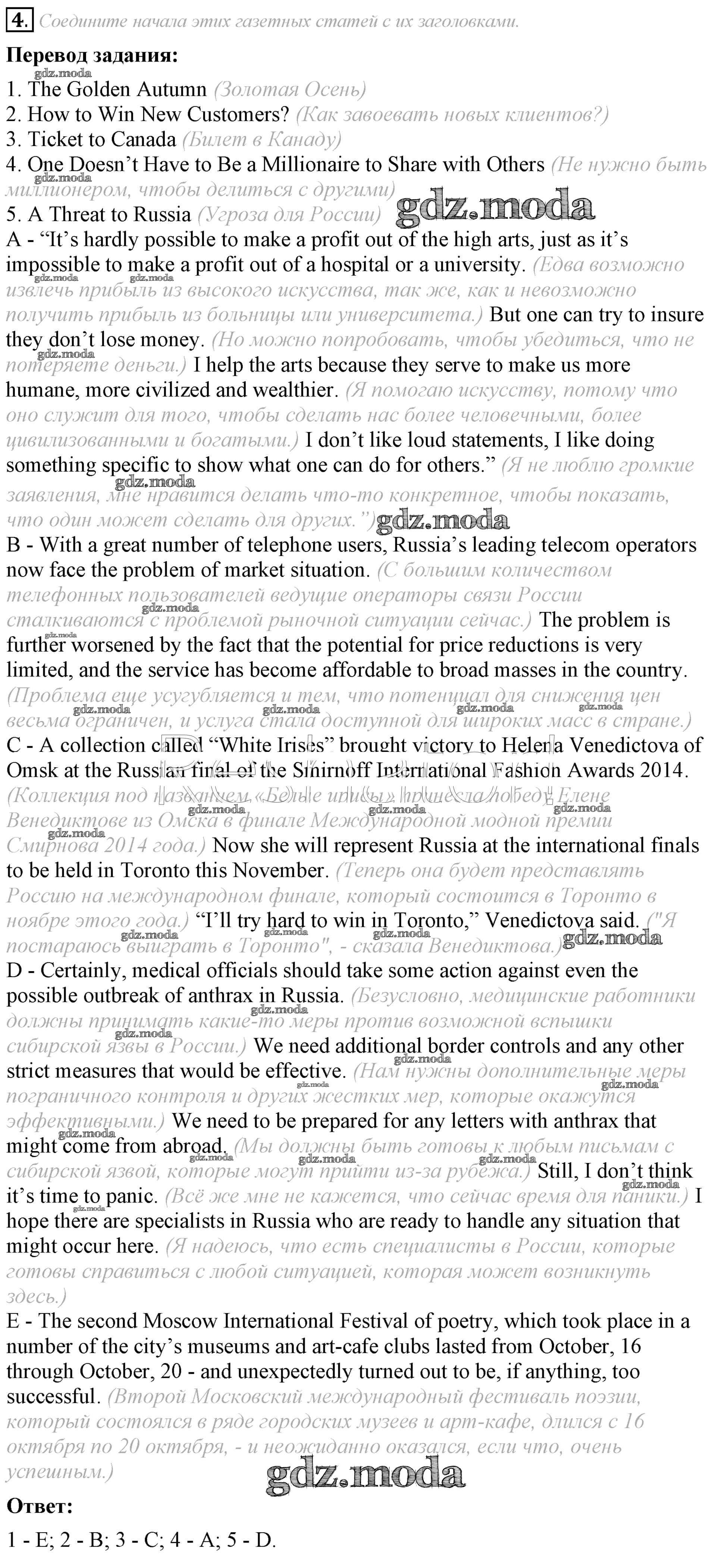 ГДЗ решение к заданию № 4 Английский язык 8 класс Афанасьева (Углубленный уровень) Просвещение 2014 Углубленный уровень ФГОС бесплатно на гдз.мода!
