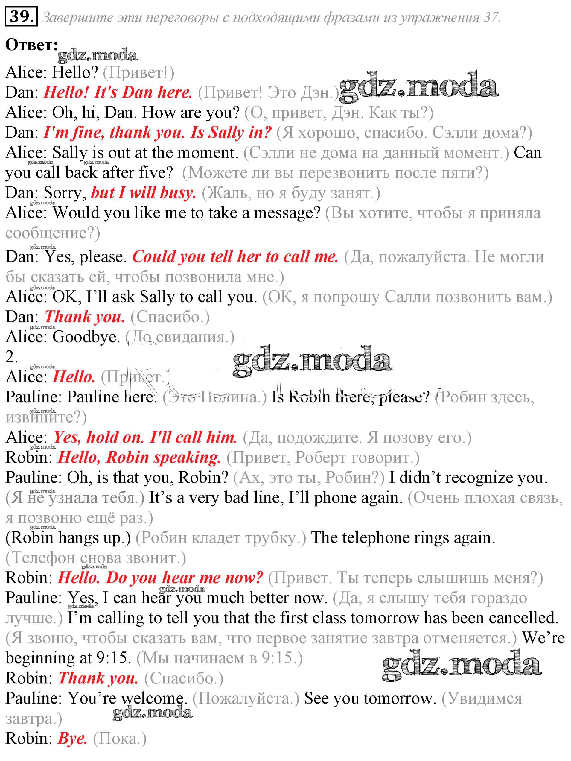 ГДЗ решение к заданию № 39 Английский язык 8 класс Афанасьева (Углубленный уровень) Просвещение 2014 Углубленный уровень ФГОС бесплатно на гдз.мода!