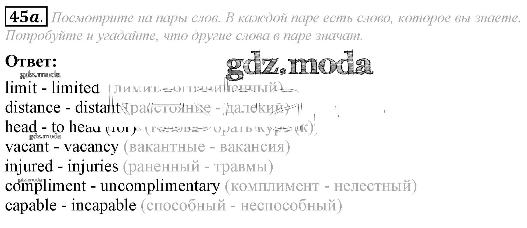 ГДЗ решение к заданию № 45a Английский язык 8 класс Афанасьева (Углубленный уровень) Просвещение 2014 Углубленный уровень ФГОС бесплатно на гдз.мода!