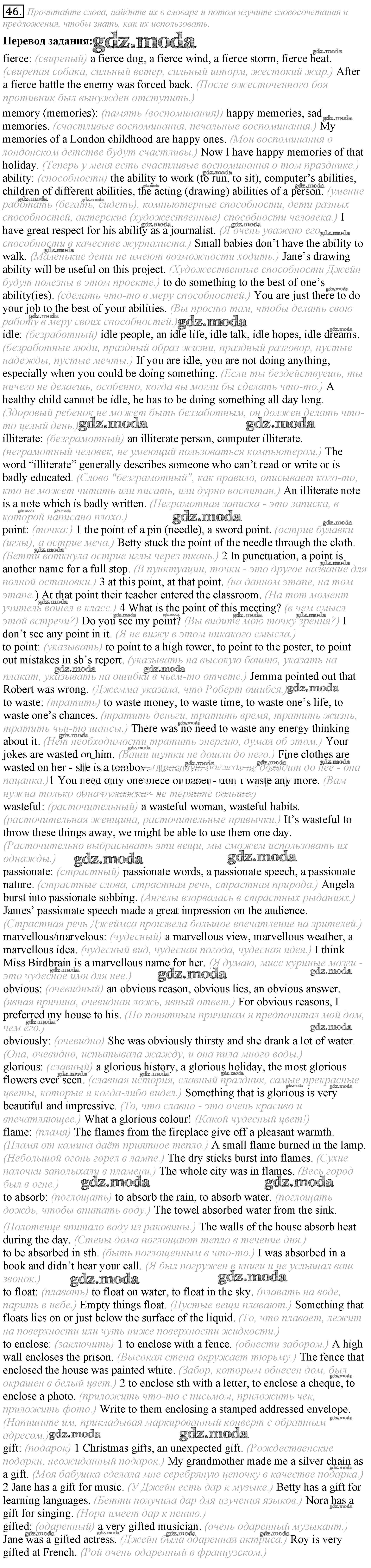 ГДЗ решение к заданию № 46 Английский язык 8 класс Афанасьева (Углубленный уровень) Просвещение 2014 Углубленный уровень ФГОС бесплатно на гдз.мода!