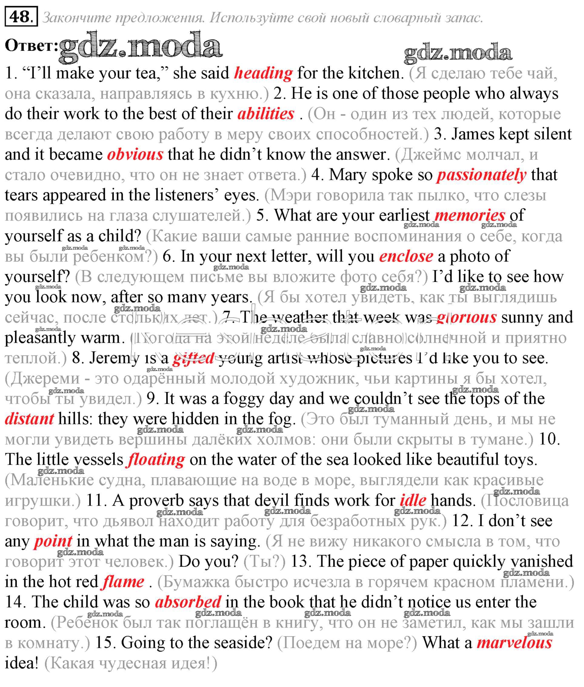 ГДЗ решение к заданию № 48 Английский язык 8 класс Афанасьева (Углубленный уровень) Просвещение 2014 Углубленный уровень ФГОС бесплатно на гдз.мода!