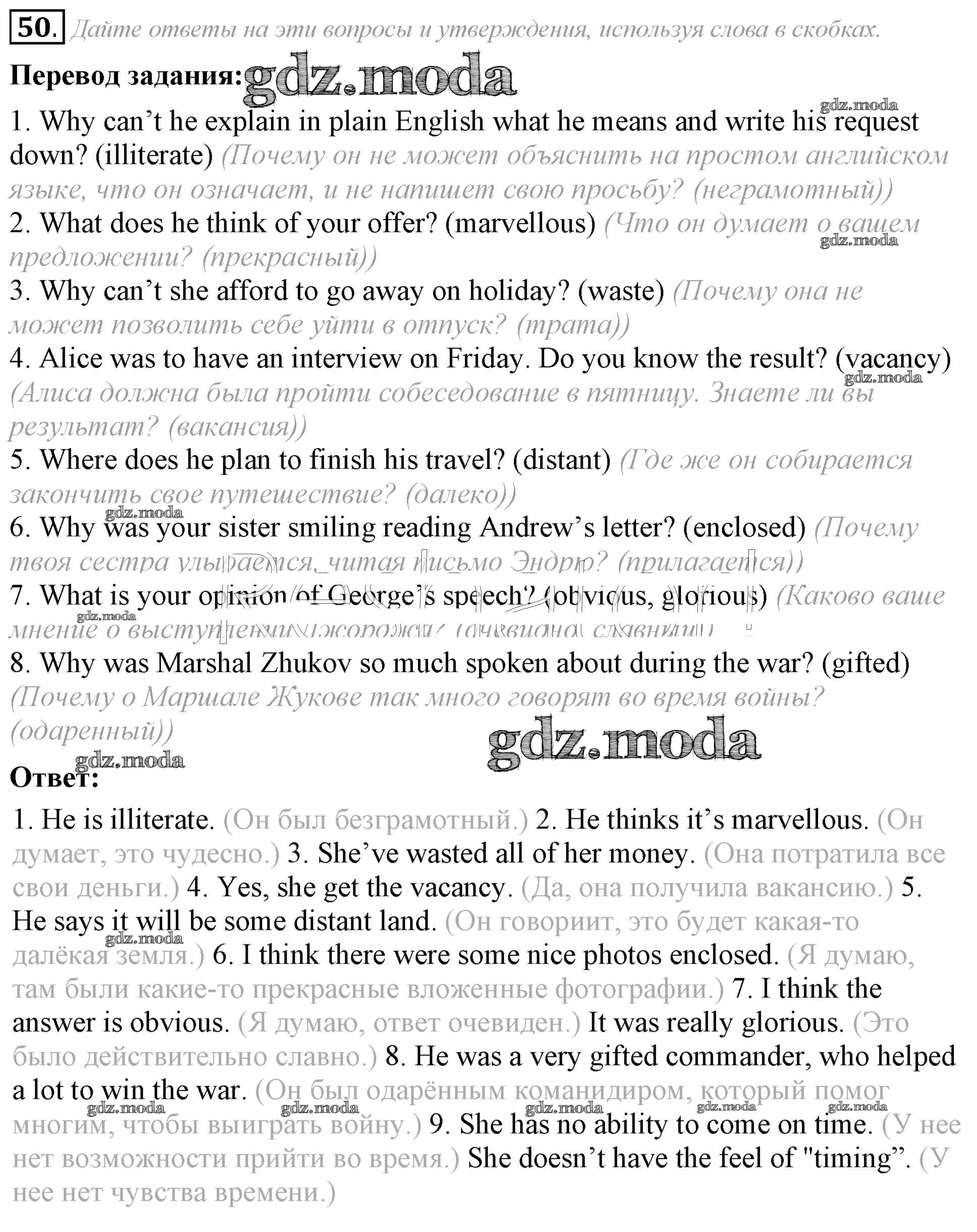 ГДЗ решение к заданию № 50 Английский язык 8 класс Афанасьева (Углубленный уровень) Просвещение 2014 Углубленный уровень ФГОС бесплатно на гдз.мода!