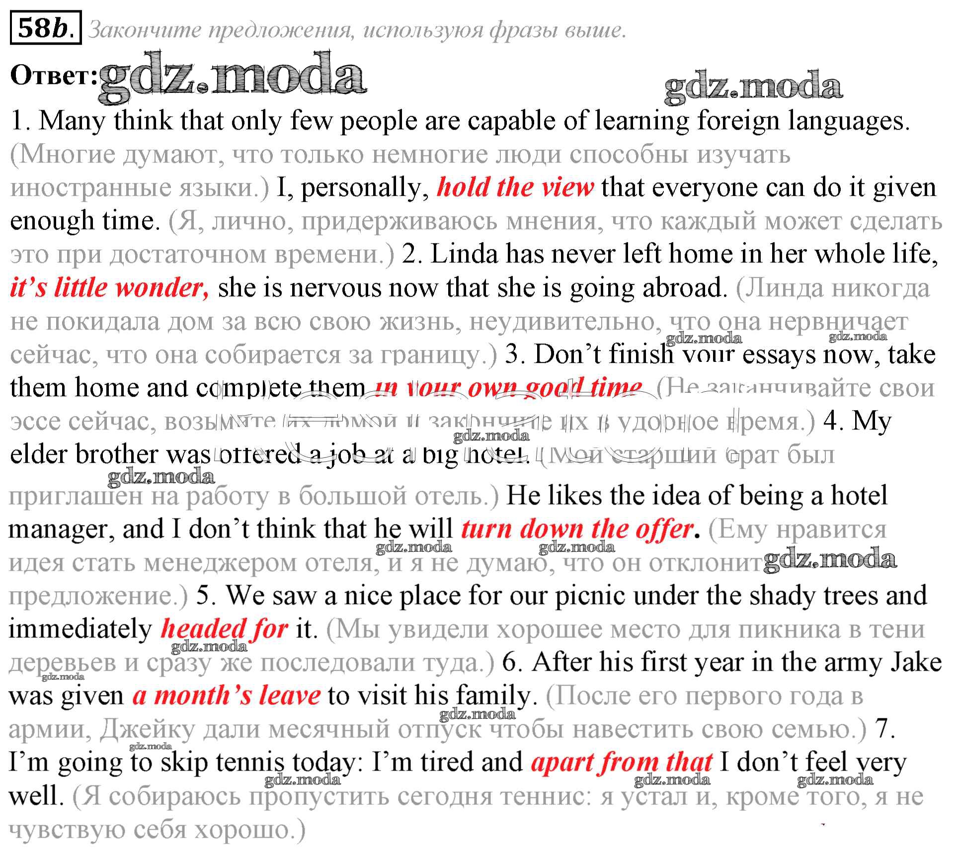ГДЗ решение к заданию № 58b Английский язык 8 класс Афанасьева (Углубленный уровень) Просвещение 2014 Углубленный уровень ФГОС бесплатно на гдз.мода!