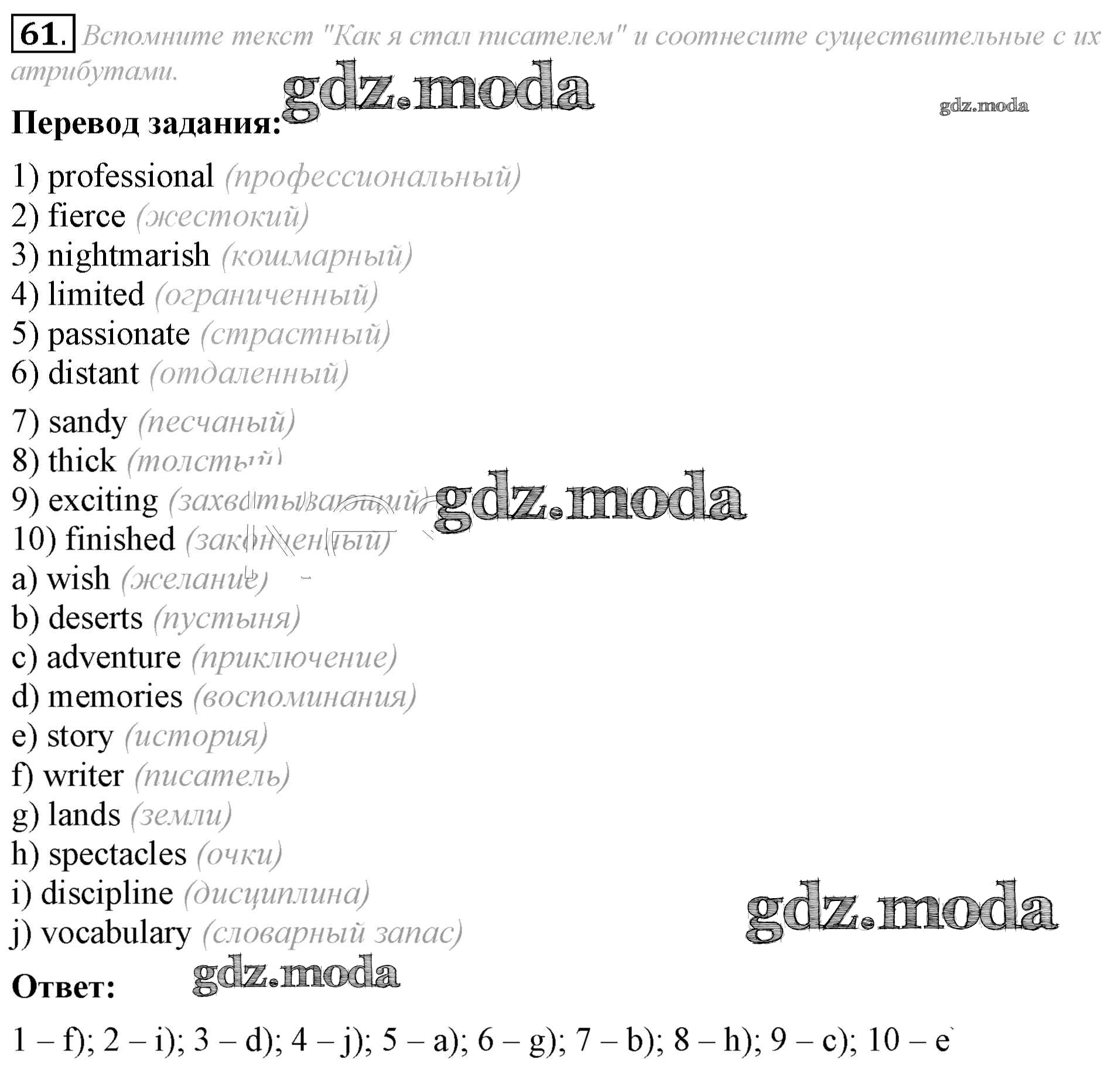 ГДЗ решение к заданию № 61 Английский язык 8 класс Афанасьева (Углубленный уровень) Просвещение 2014 Углубленный уровень ФГОС бесплатно на гдз.мода!