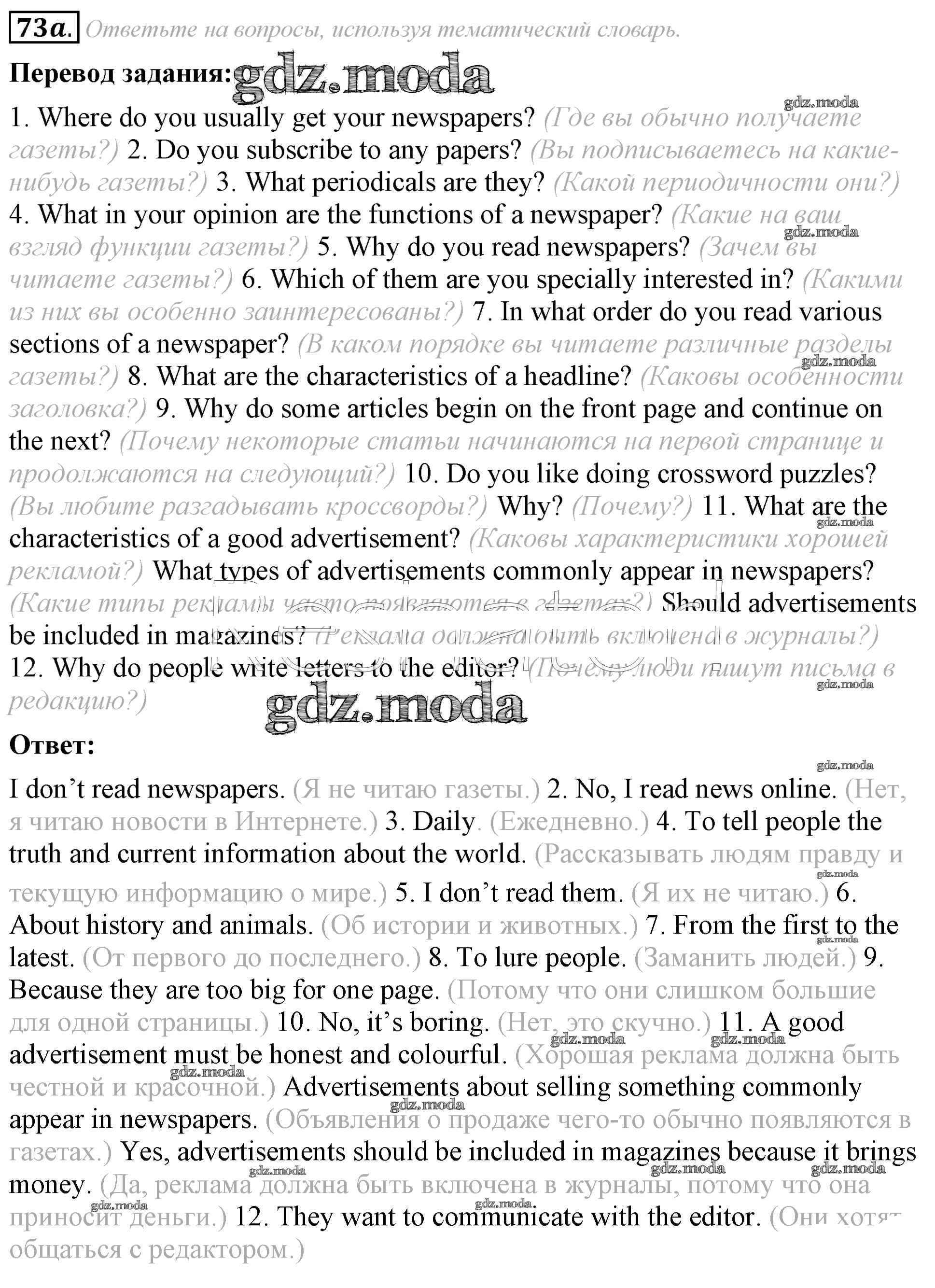 ГДЗ решение к заданию № 73a Английский язык 8 класс Афанасьева (Углубленный уровень) Просвещение 2014 Углубленный уровень ФГОС бесплатно на гдз.мода!