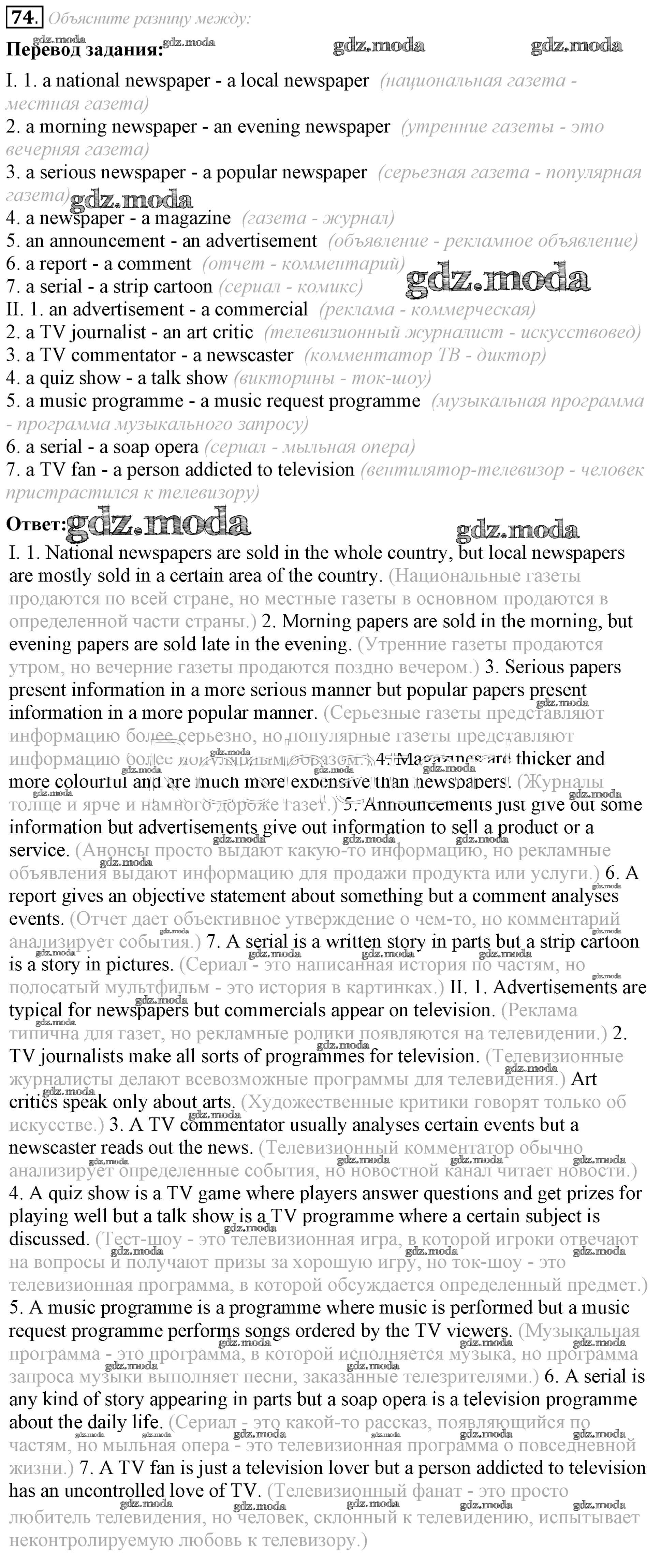 ГДЗ решение к заданию № 74 Английский язык 8 класс Афанасьева (Углубленный уровень) Просвещение 2014 Углубленный уровень ФГОС бесплатно на гдз.мода!