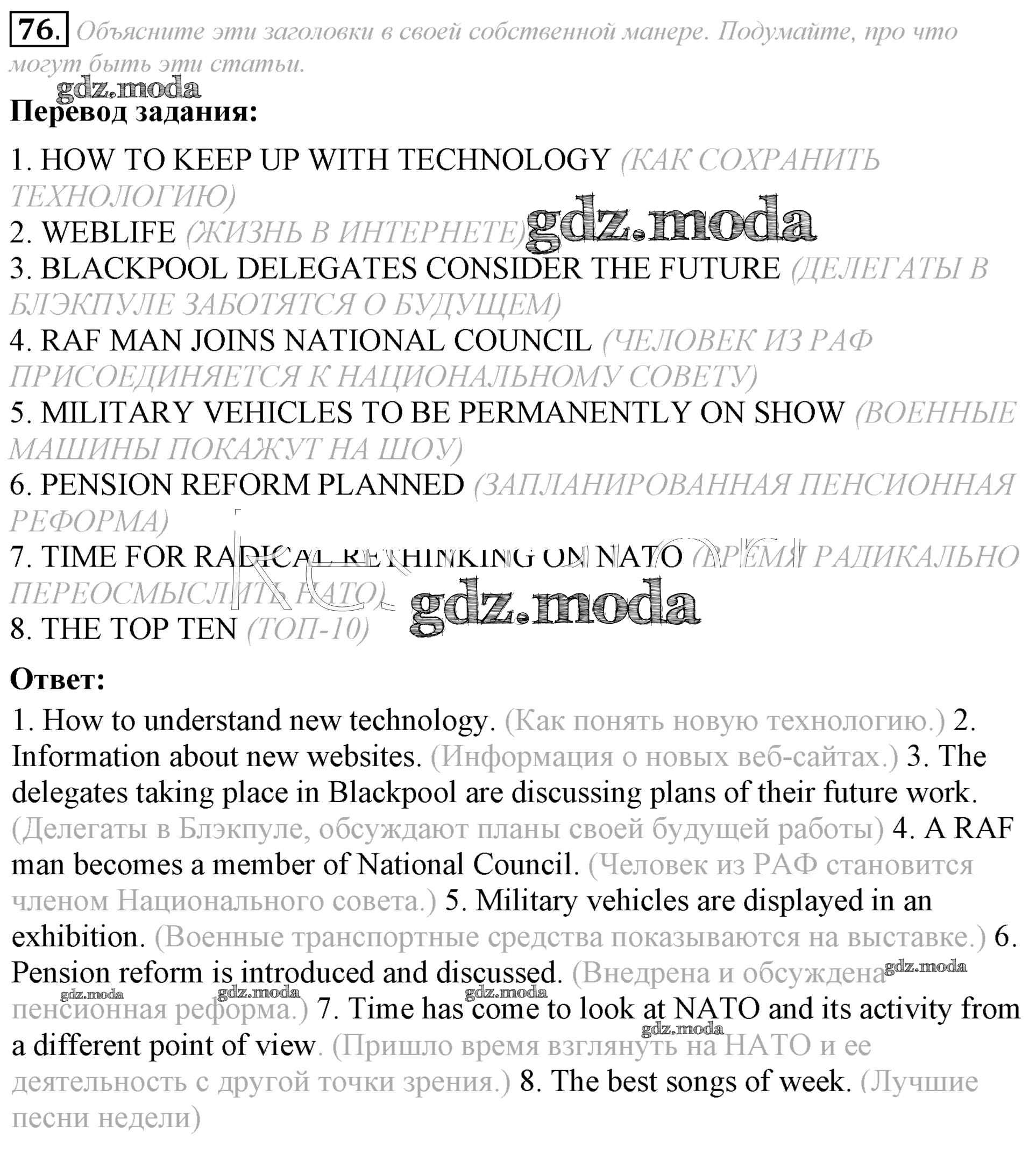 ГДЗ решение к заданию № 76 Английский язык 8 класс Афанасьева (Углубленный уровень) Просвещение 2014 Углубленный уровень ФГОС бесплатно на гдз.мода!