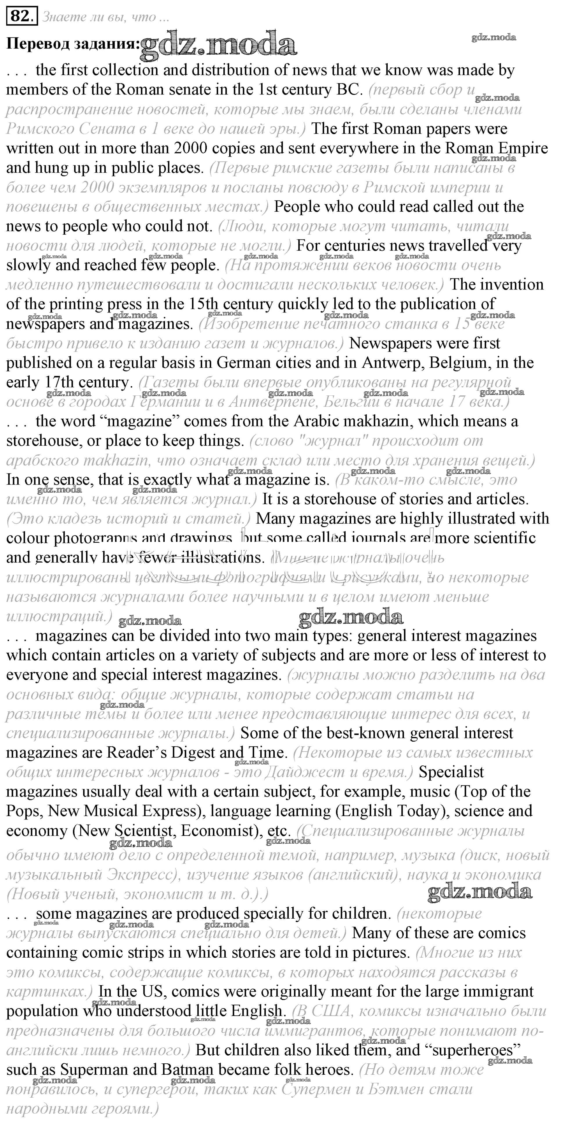 ГДЗ решение к заданию № 82 Английский язык 8 класс Афанасьева (Углубленный уровень) Просвещение 2014 Углубленный уровень ФГОС бесплатно на гдз.мода!