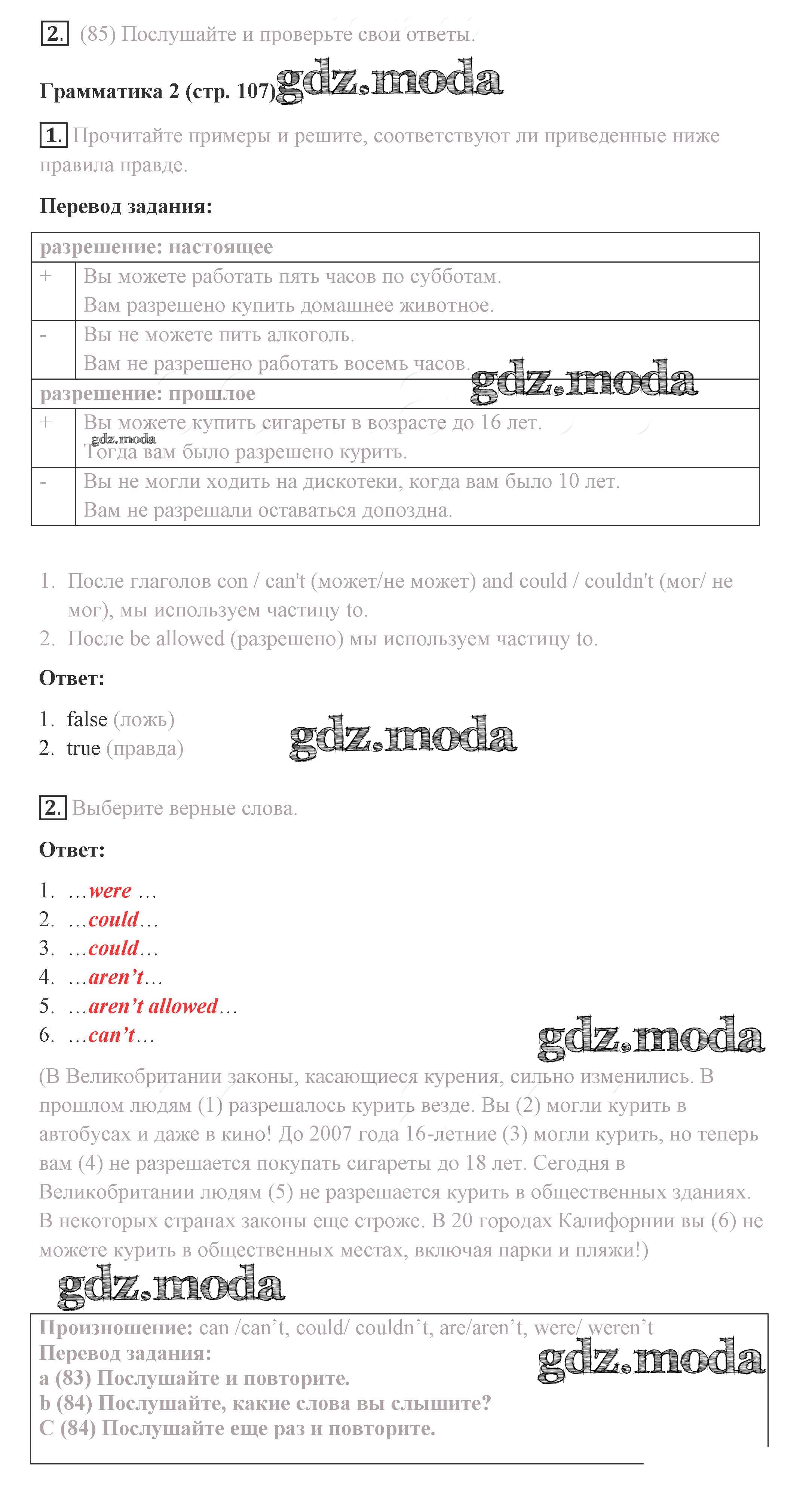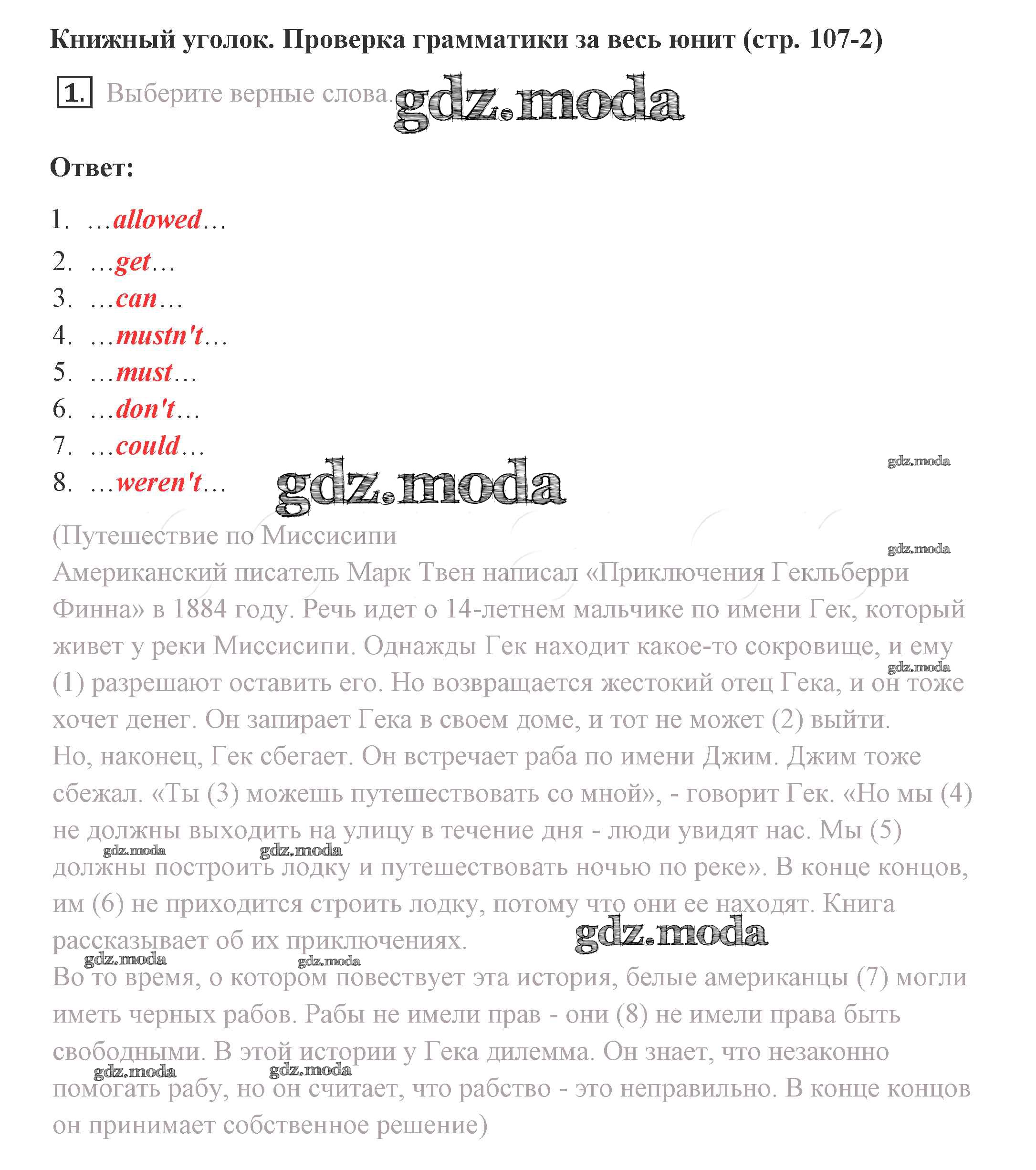 ГДЗ решение к заданию № 107 Английский язык 8 класс Комарова Ю.А. Русское слово 2016 ФГОС бесплатно на гдз.мода!
