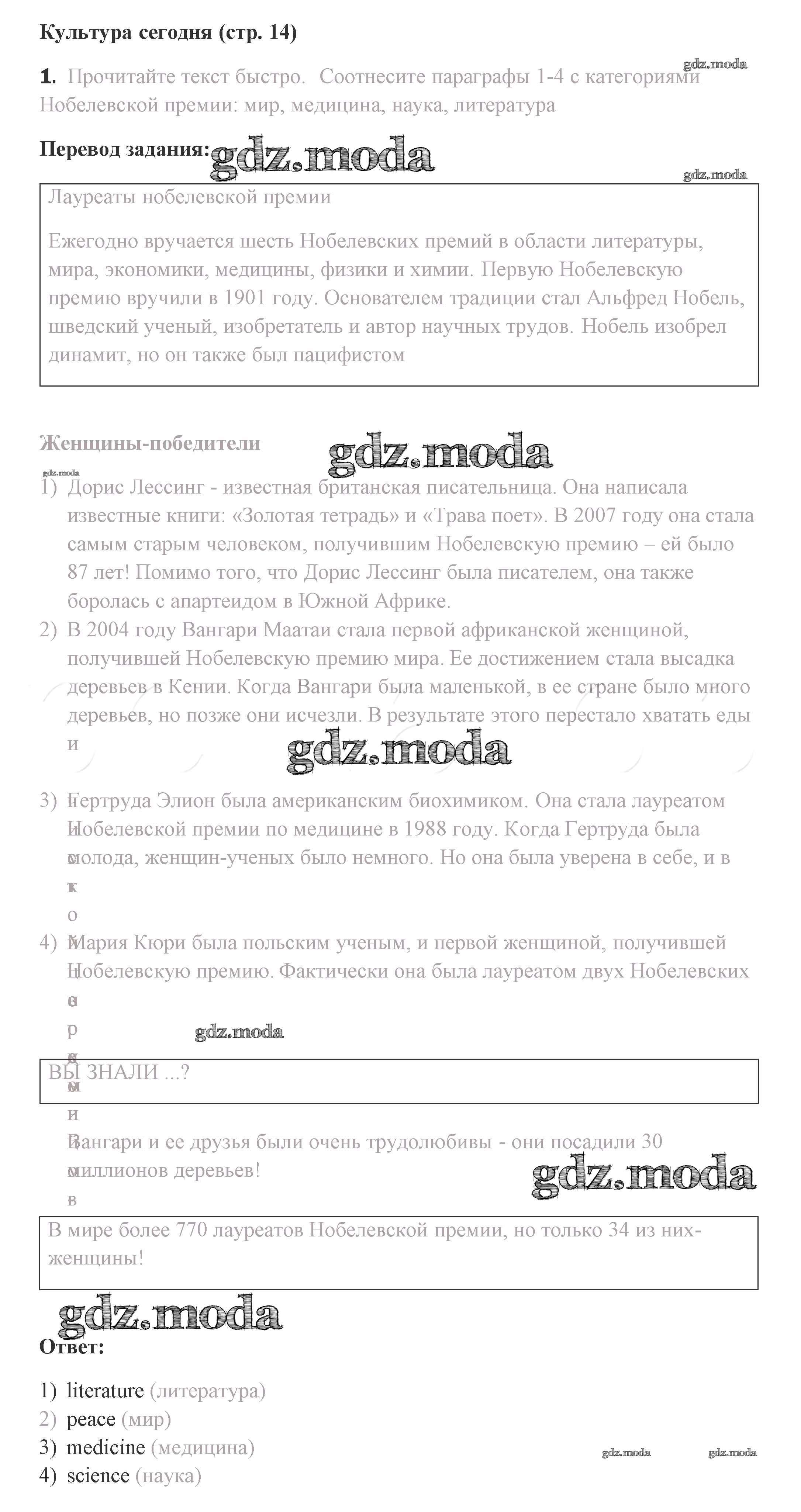 ГДЗ решение к заданию № 14 Английский язык 8 класс Комарова Ю.А. Русское слово 2016 ФГОС бесплатно на гдз.мода!