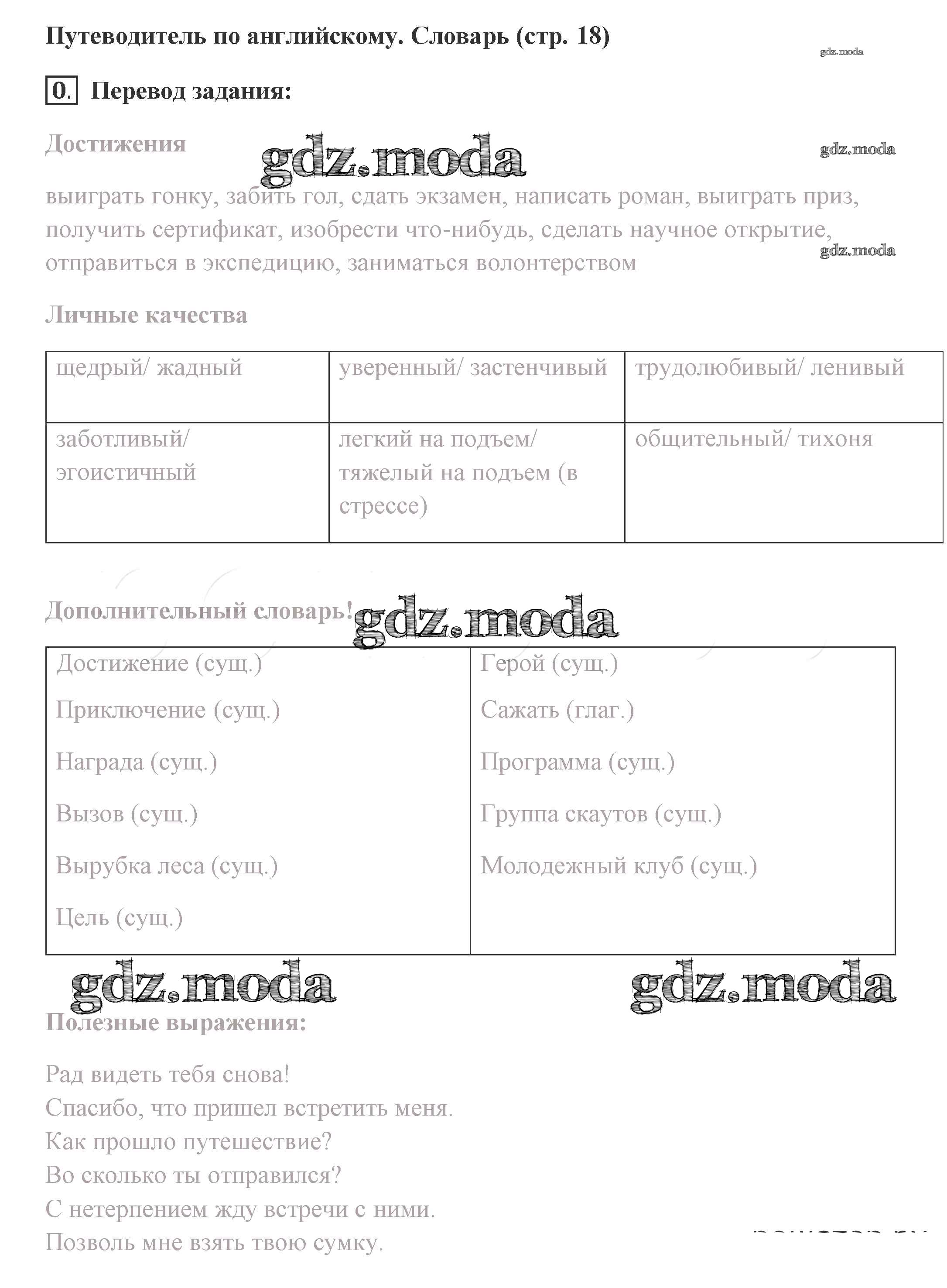ГДЗ решение к заданию № 18 Английский язык 8 класс Комарова Ю.А. Русское слово 2016 ФГОС бесплатно на гдз.мода!