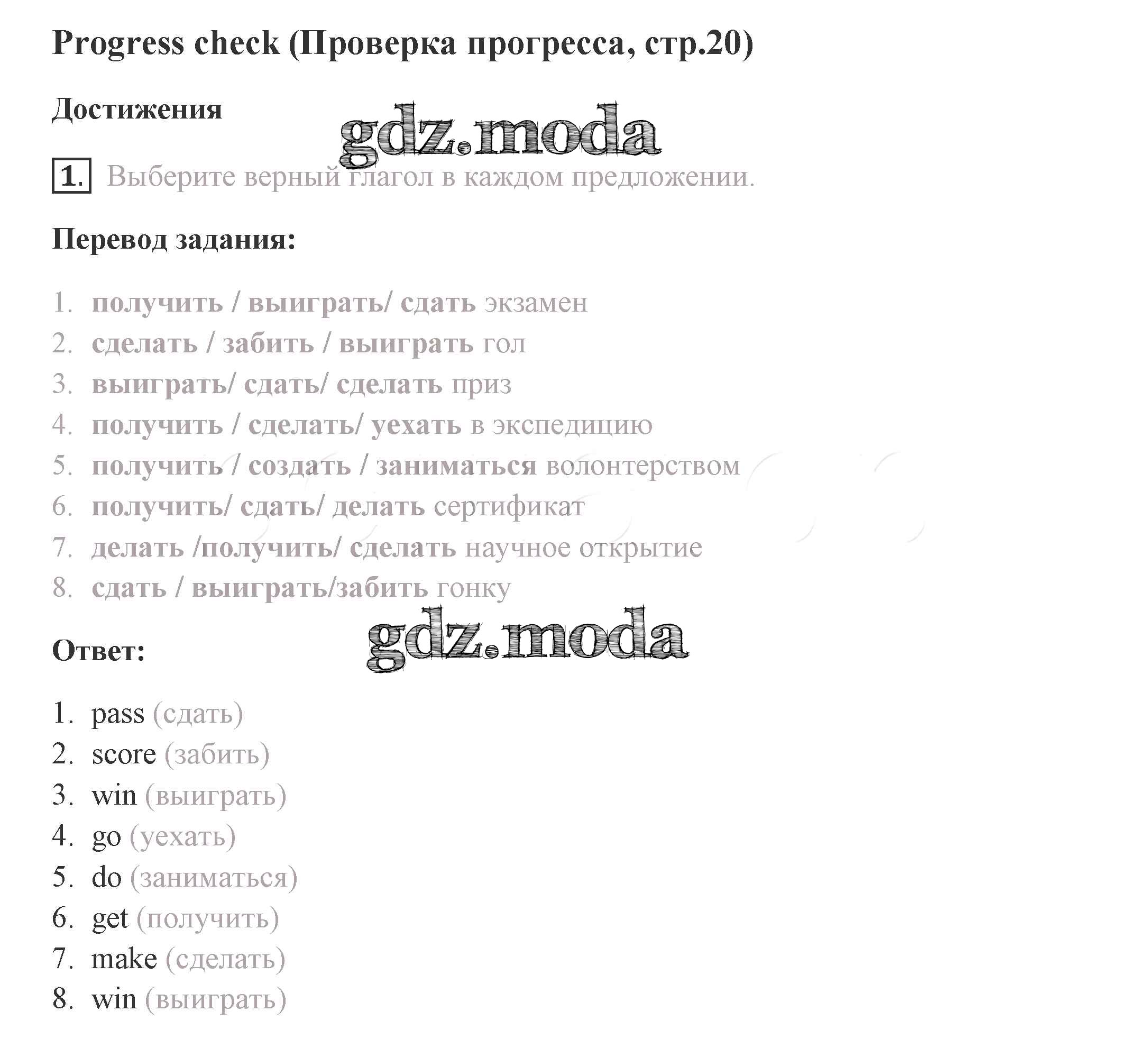 ГДЗ решение к заданию № 20 Английский язык 8 класс Комарова Ю.А. Русское слово 2016 ФГОС бесплатно на гдз.мода!