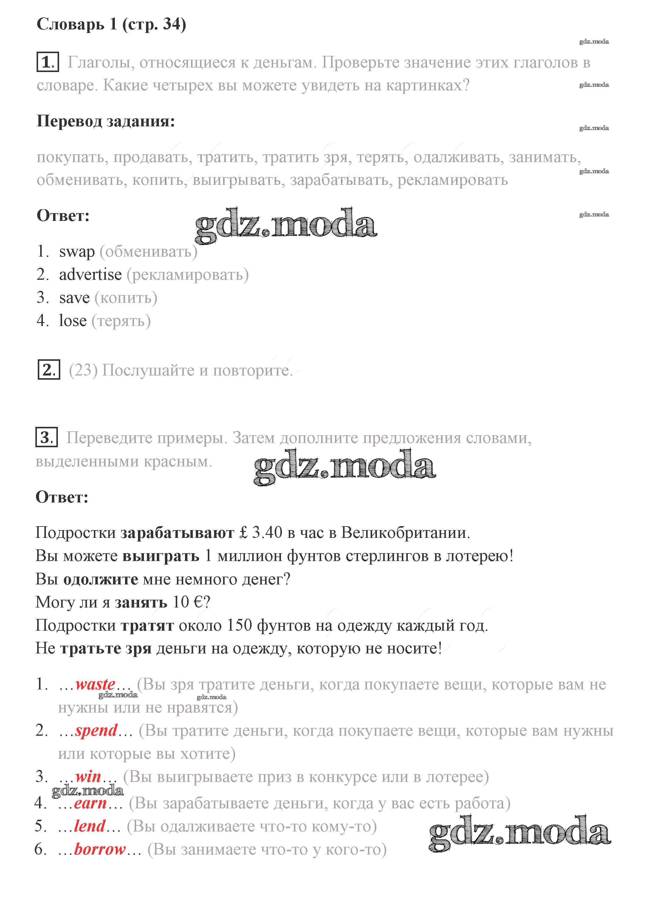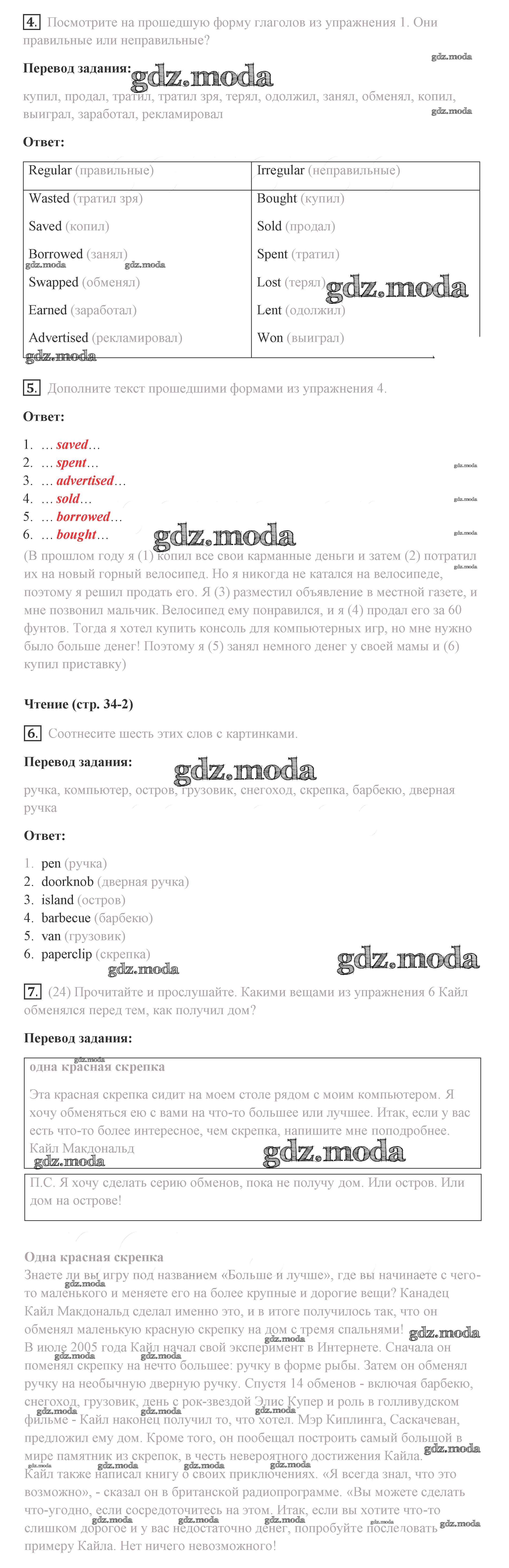 ГДЗ решение к заданию № 34 Английский язык 8 класс Комарова Ю.А. Русское слово 2016 ФГОС бесплатно на гдз.мода!