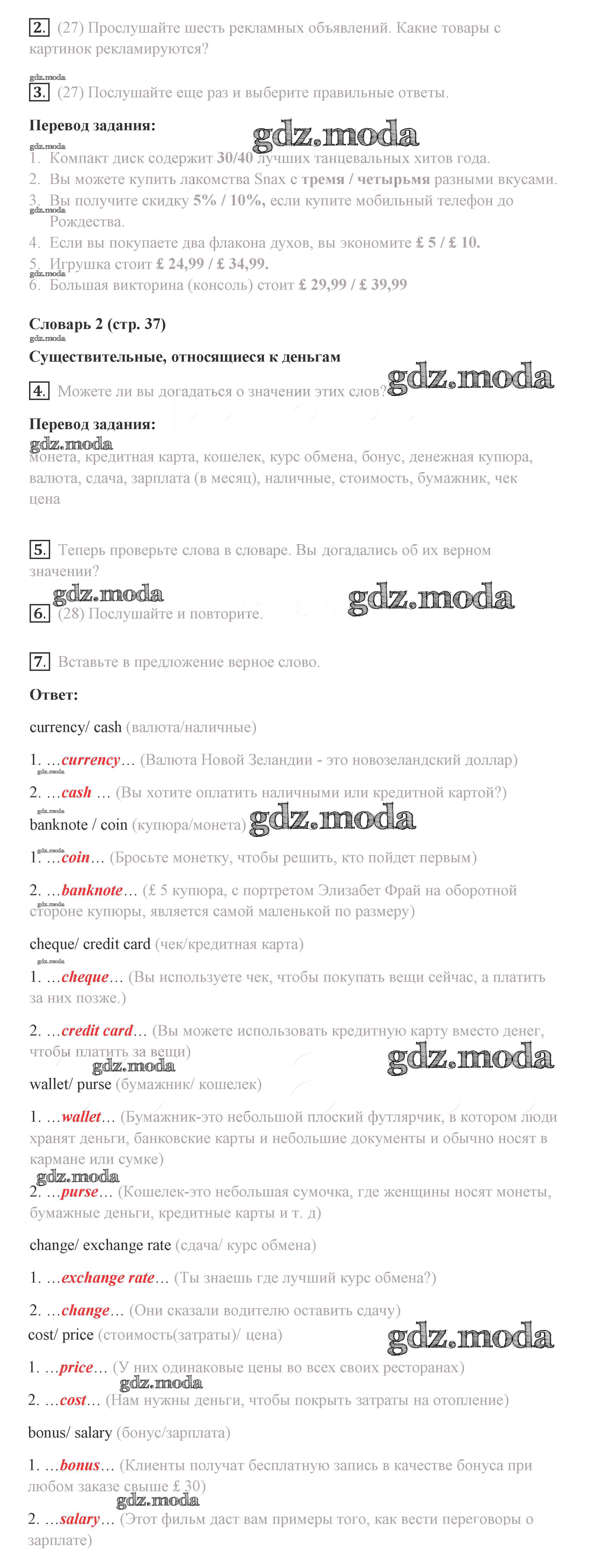 ГДЗ решение к заданию № 37 Английский язык 8 класс Комарова Ю.А. Русское слово 2016 ФГОС бесплатно на гдз.мода!