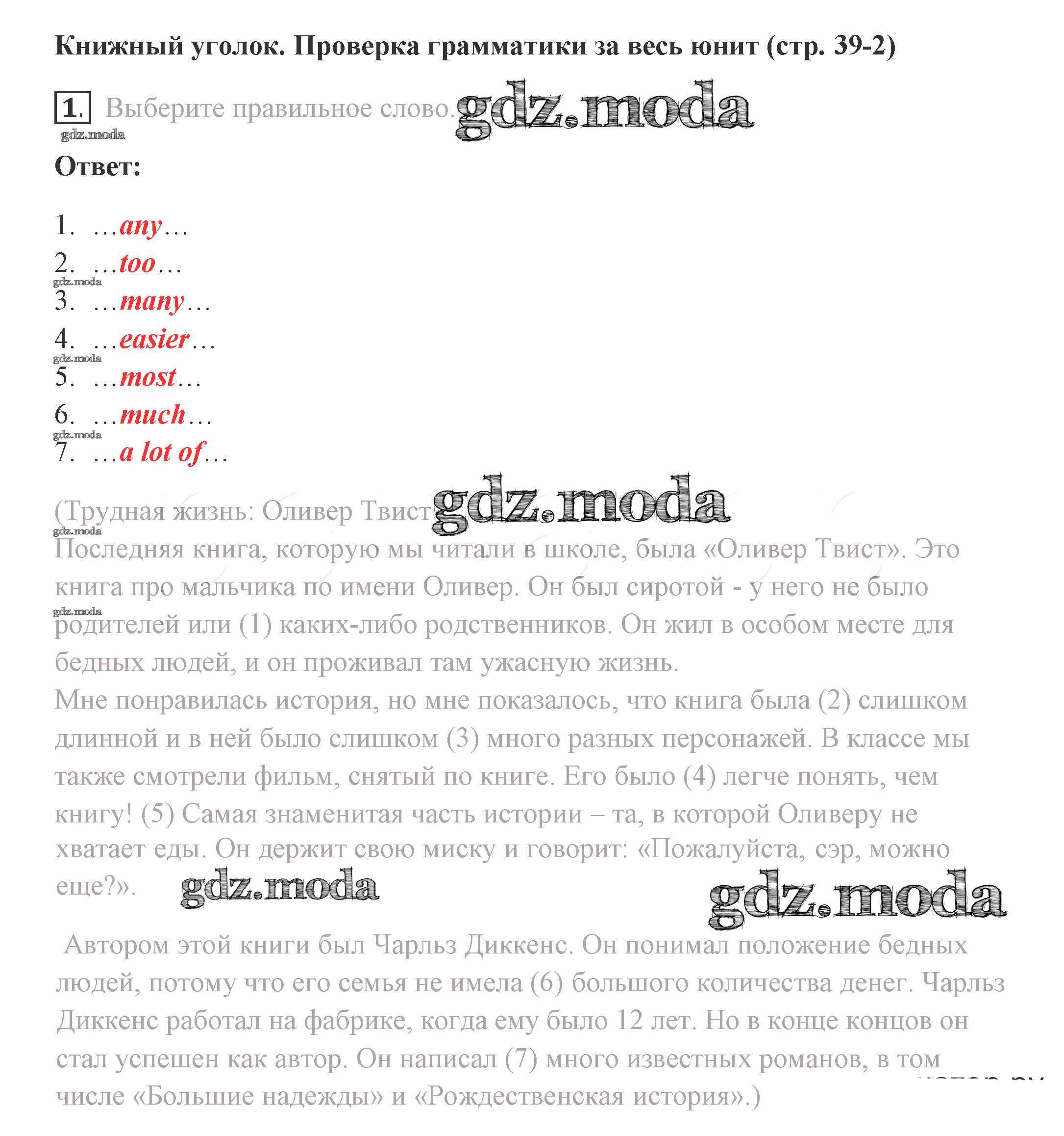 ГДЗ решение к заданию № 39 Английский язык 8 класс Комарова Ю.А. Русское слово 2016 ФГОС бесплатно на гдз.мода!