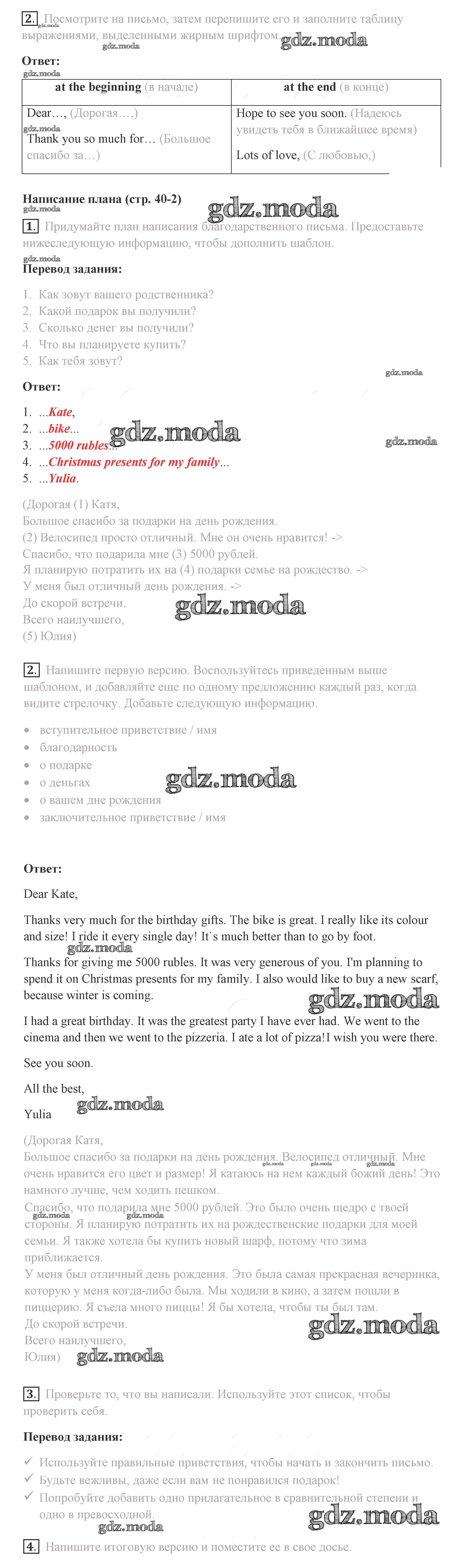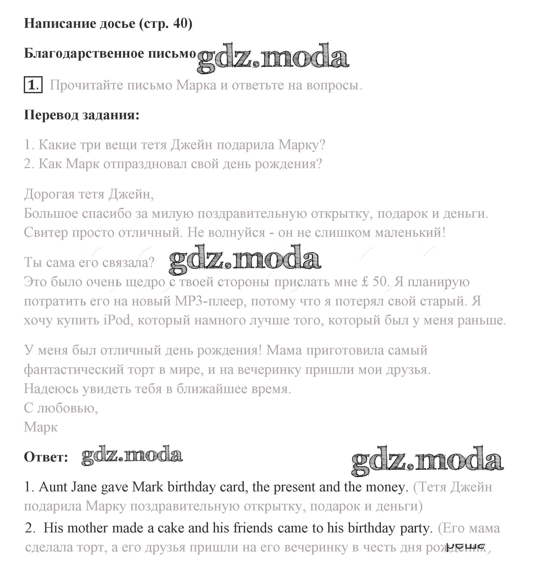 ГДЗ решение к заданию № 40 Английский язык 8 класс Комарова Ю.А. Русское слово 2016 ФГОС бесплатно на гдз.мода!