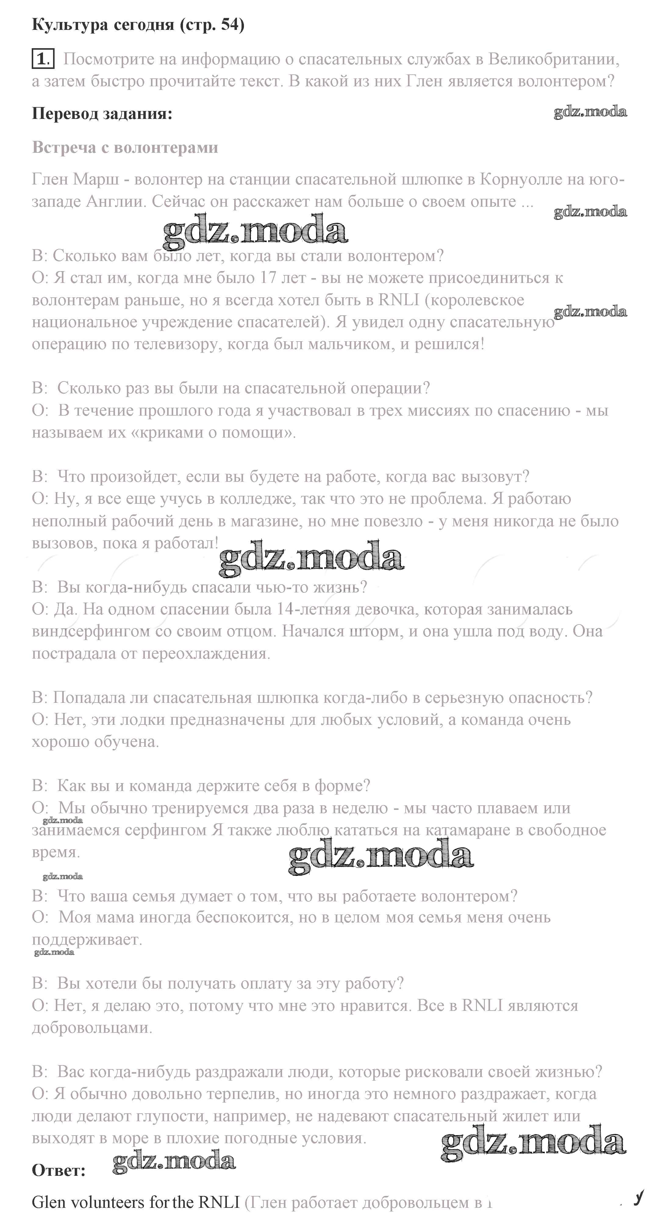 ГДЗ решение к заданию № 54 Английский язык 8 класс Комарова Ю.А. Русское слово 2016 ФГОС бесплатно на гдз.мода!