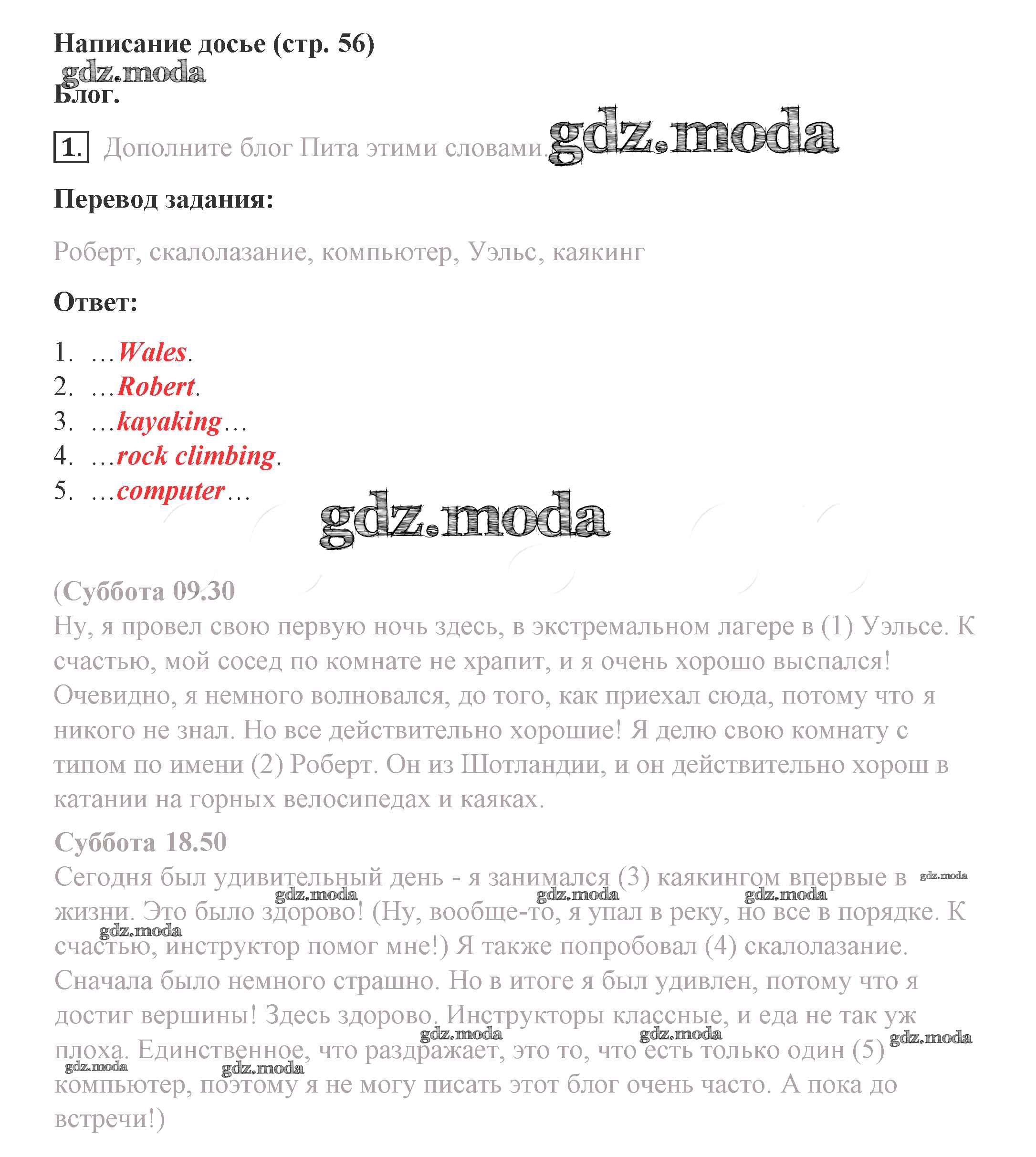 ГДЗ решение к заданию № 56 Английский язык 8 класс Комарова Ю.А. Русское слово 2016 ФГОС бесплатно на гдз.мода!