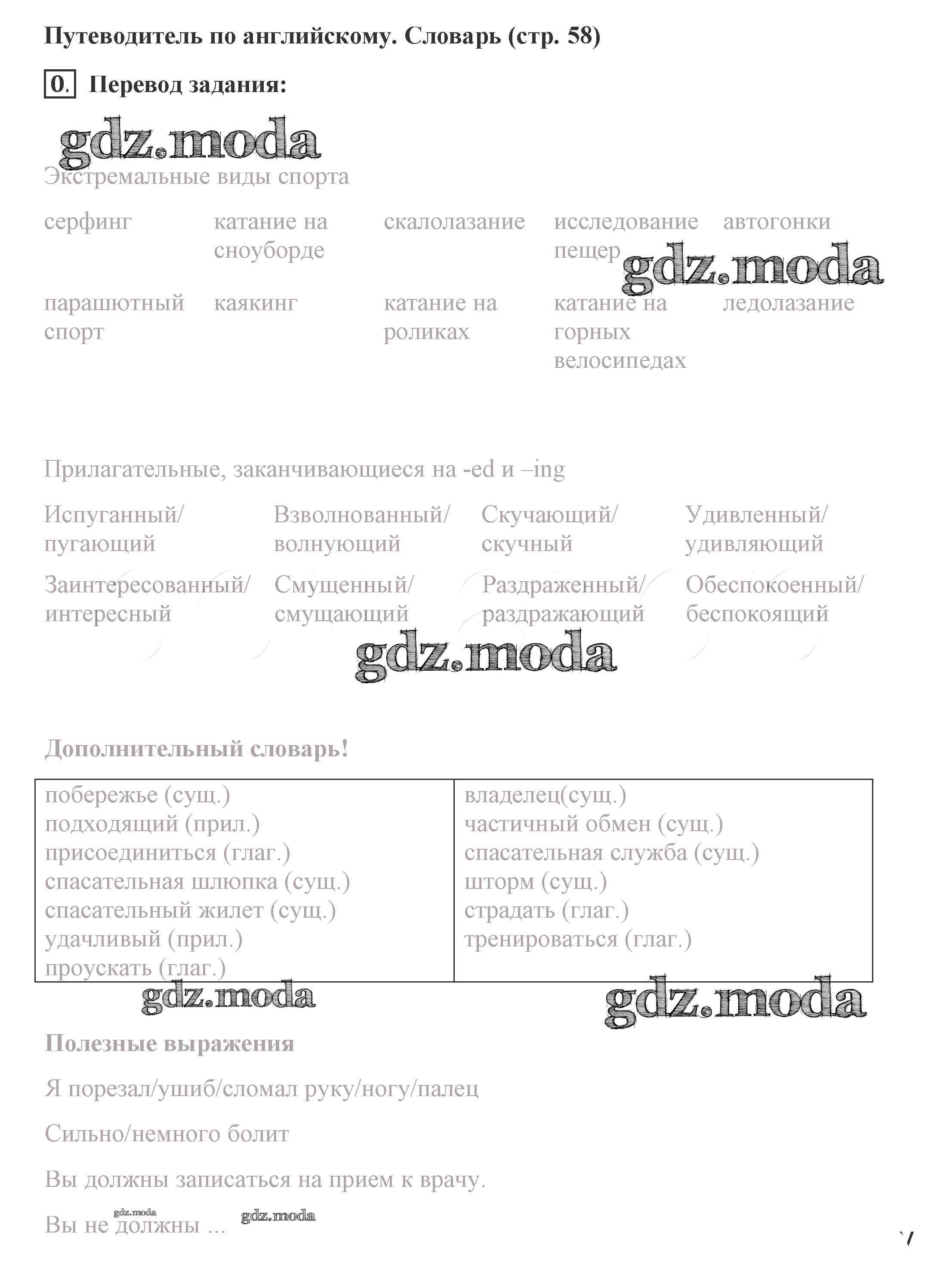 ГДЗ решение к заданию № 58 Английский язык 8 класс Комарова Ю.А. Русское слово 2016 ФГОС бесплатно на гдз.мода!