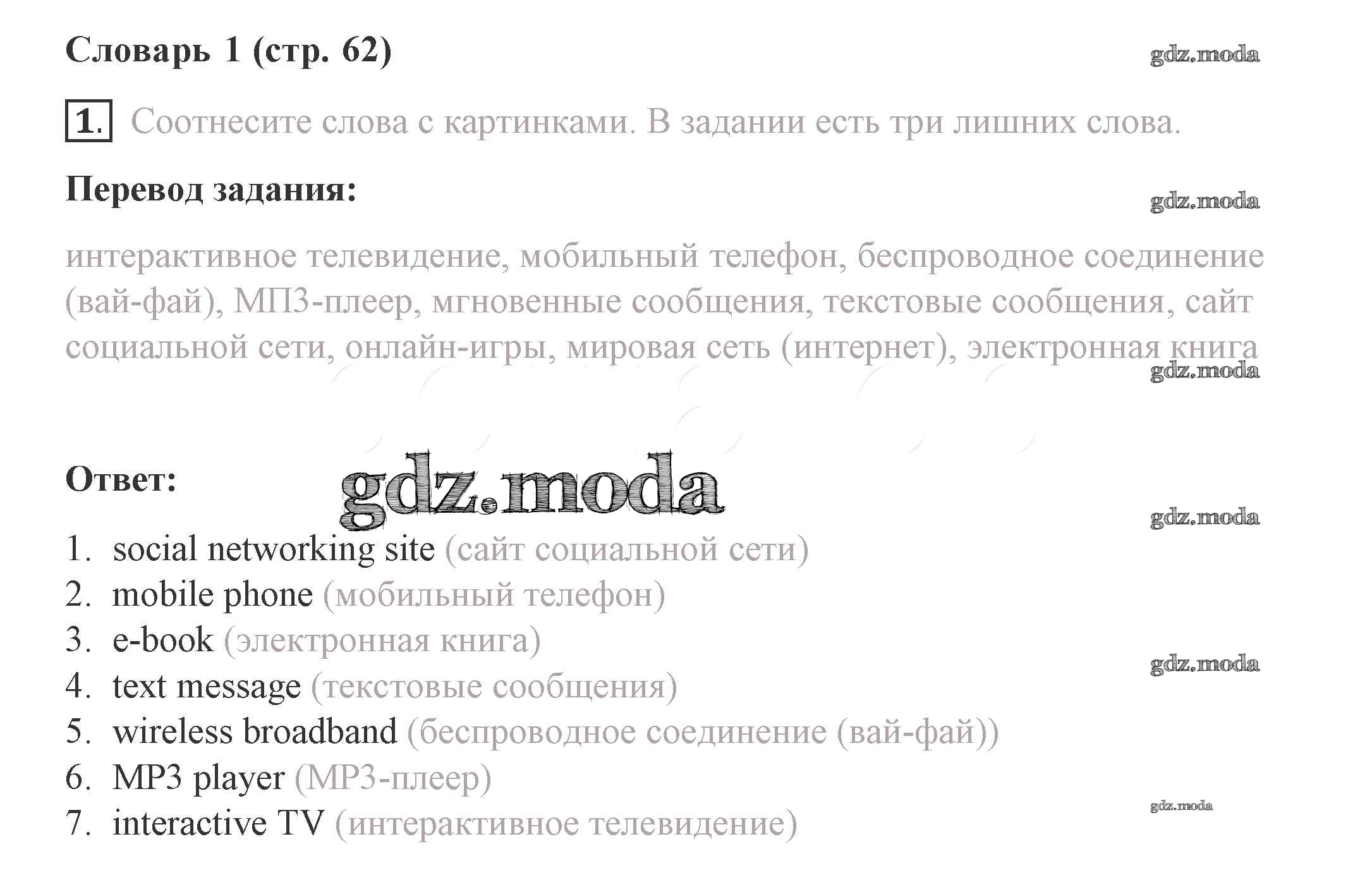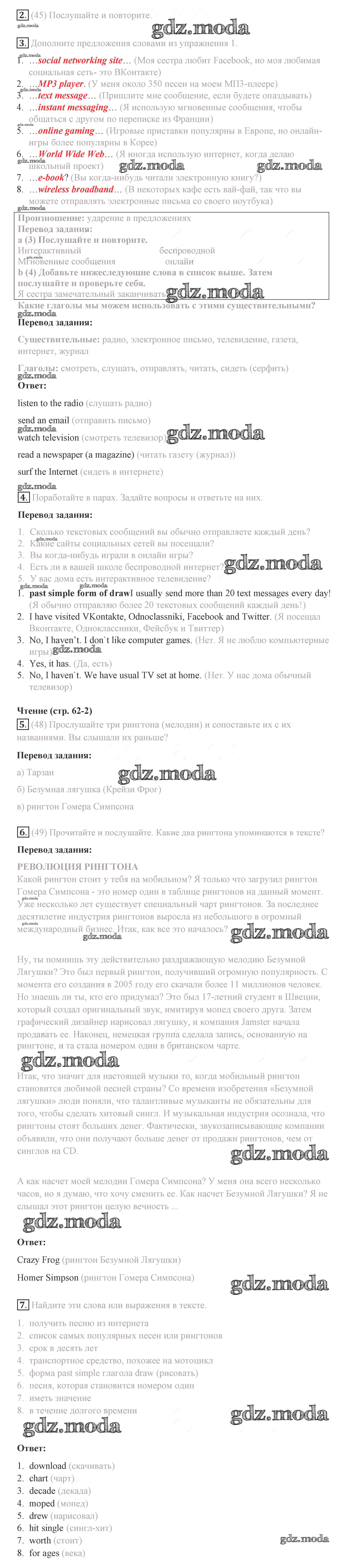 ГДЗ решение к заданию № 62 Английский язык 8 класс Комарова Ю.А. Русское слово 2016 ФГОС бесплатно на гдз.мода!