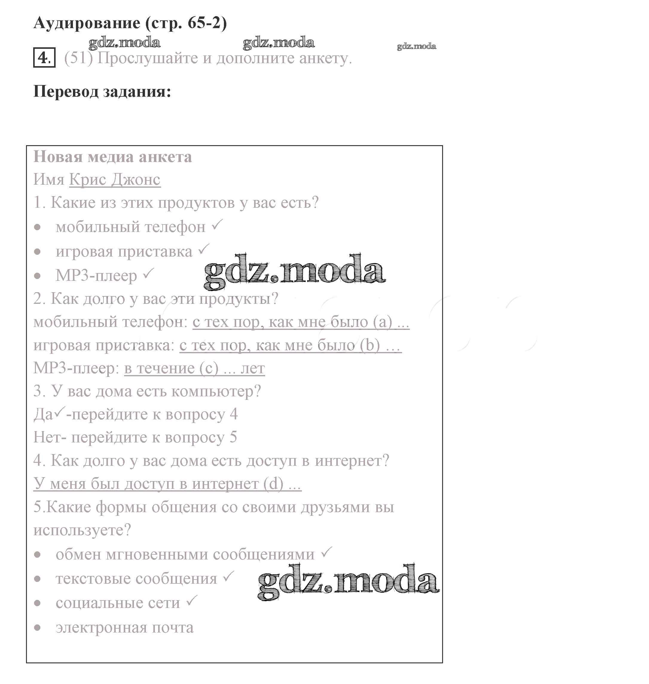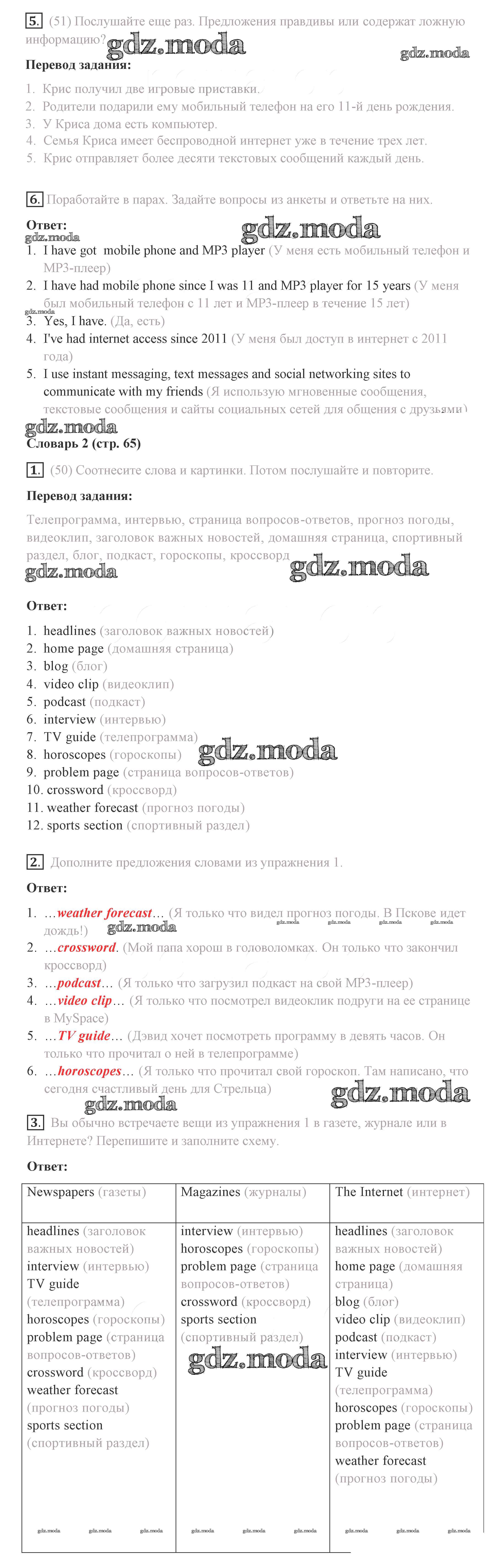 ГДЗ решение к заданию № 65 Английский язык 8 класс Комарова Ю.А. Русское слово 2016 ФГОС бесплатно на гдз.мода!