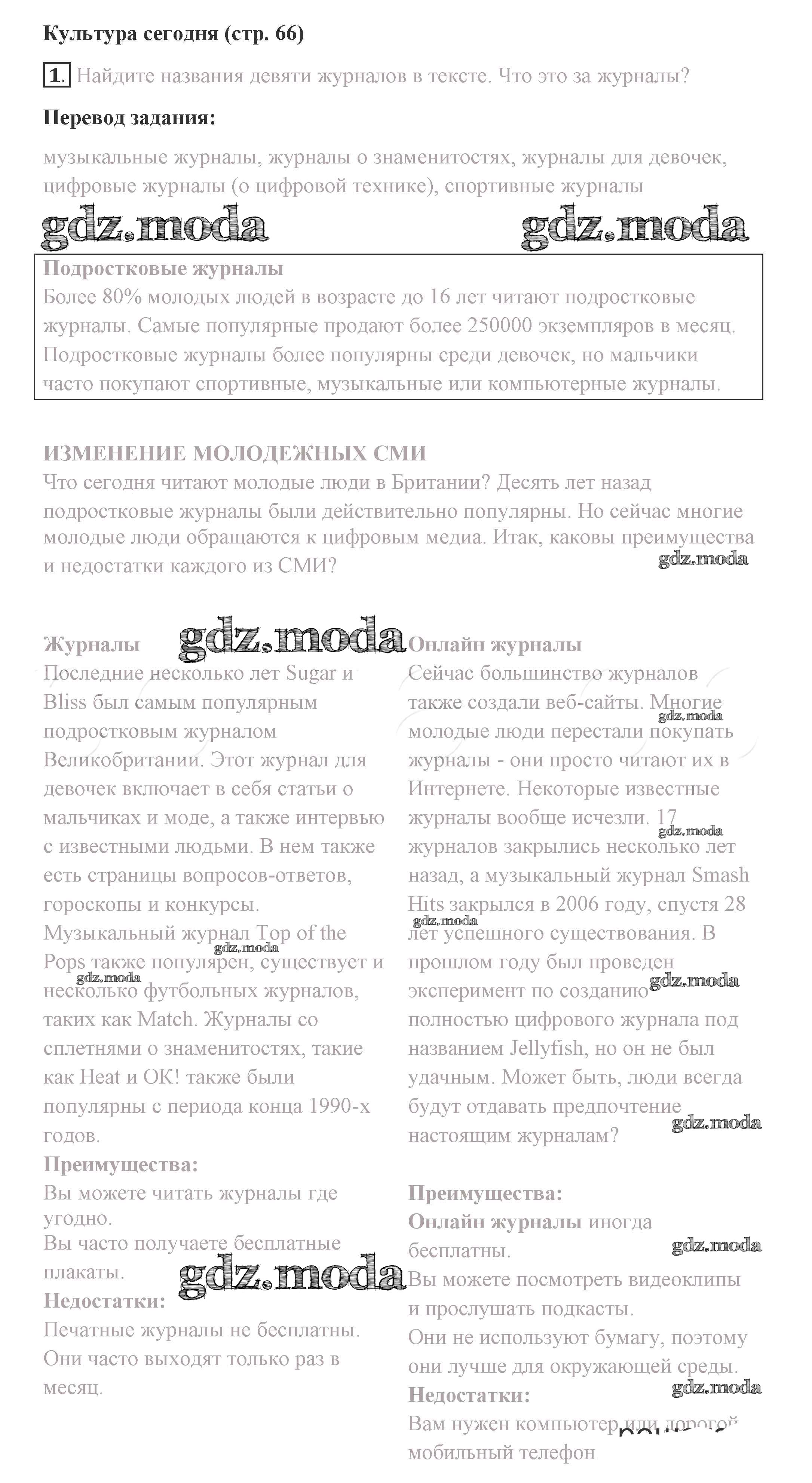 ГДЗ решение к заданию № 66 Английский язык 8 класс Комарова Ю.А. Русское слово 2016 ФГОС бесплатно на гдз.мода!