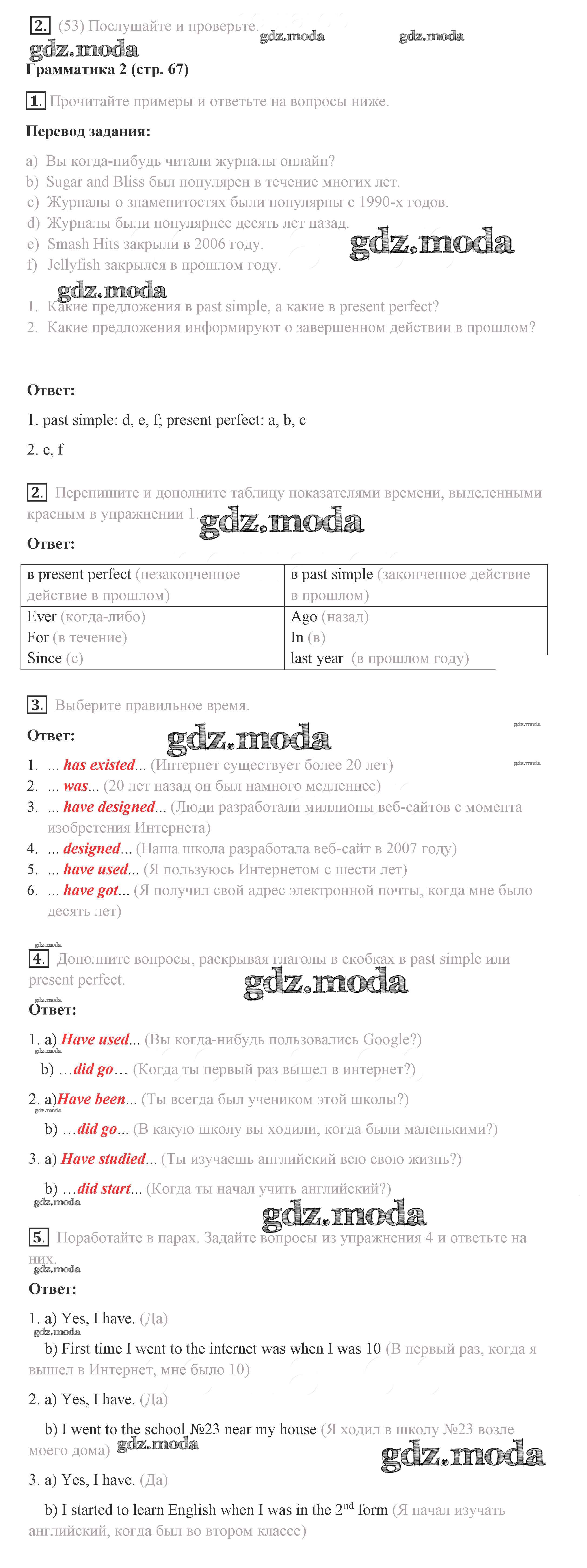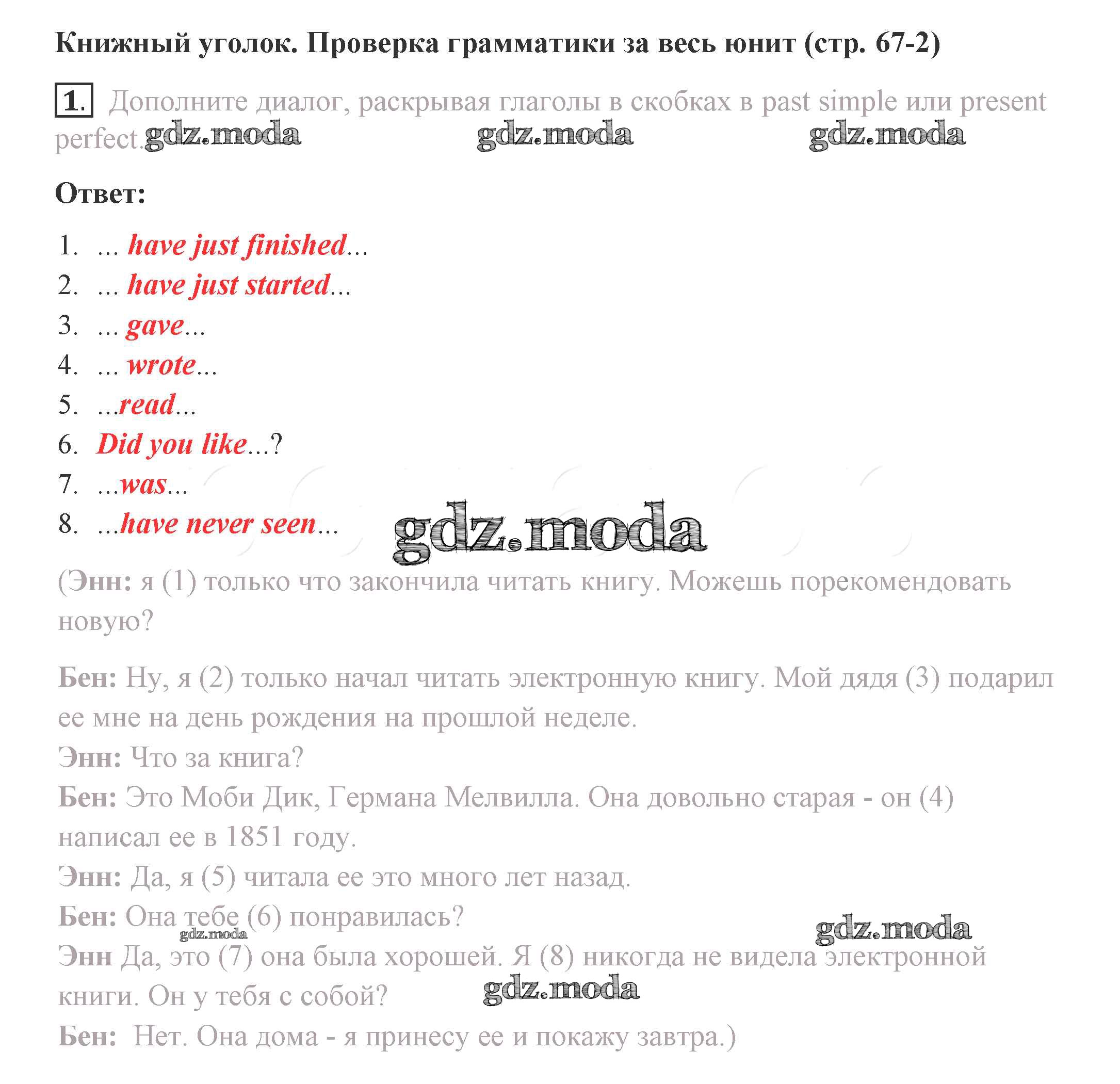 ГДЗ решение к заданию № 67 Английский язык 8 класс Комарова Ю.А. Русское слово 2016 ФГОС бесплатно на гдз.мода!