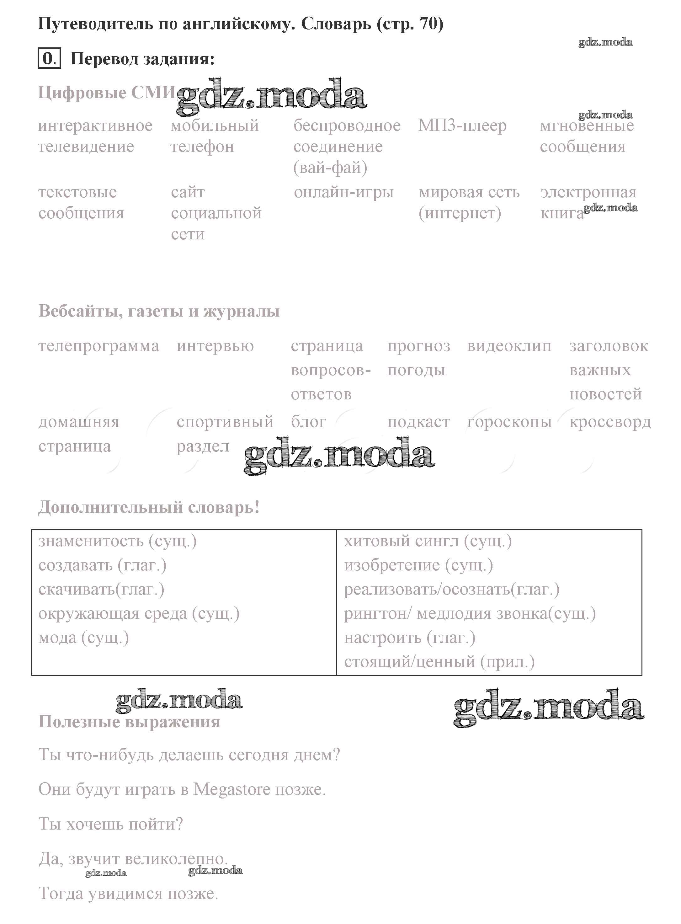 ГДЗ решение к заданию № 70 Английский язык 8 класс Комарова Ю.А. Русское слово 2016 ФГОС бесплатно на гдз.мода!