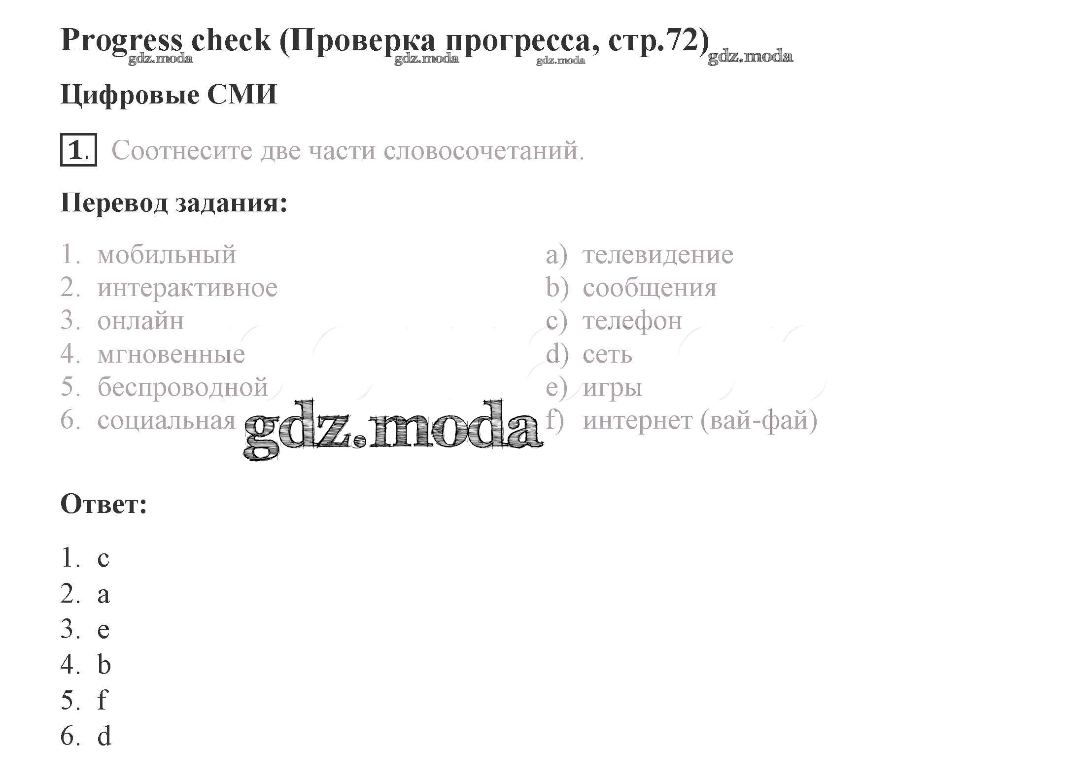 ГДЗ решение к заданию № 72 Английский язык 8 класс Комарова Ю.А. Русское слово 2016 ФГОС бесплатно на гдз.мода!