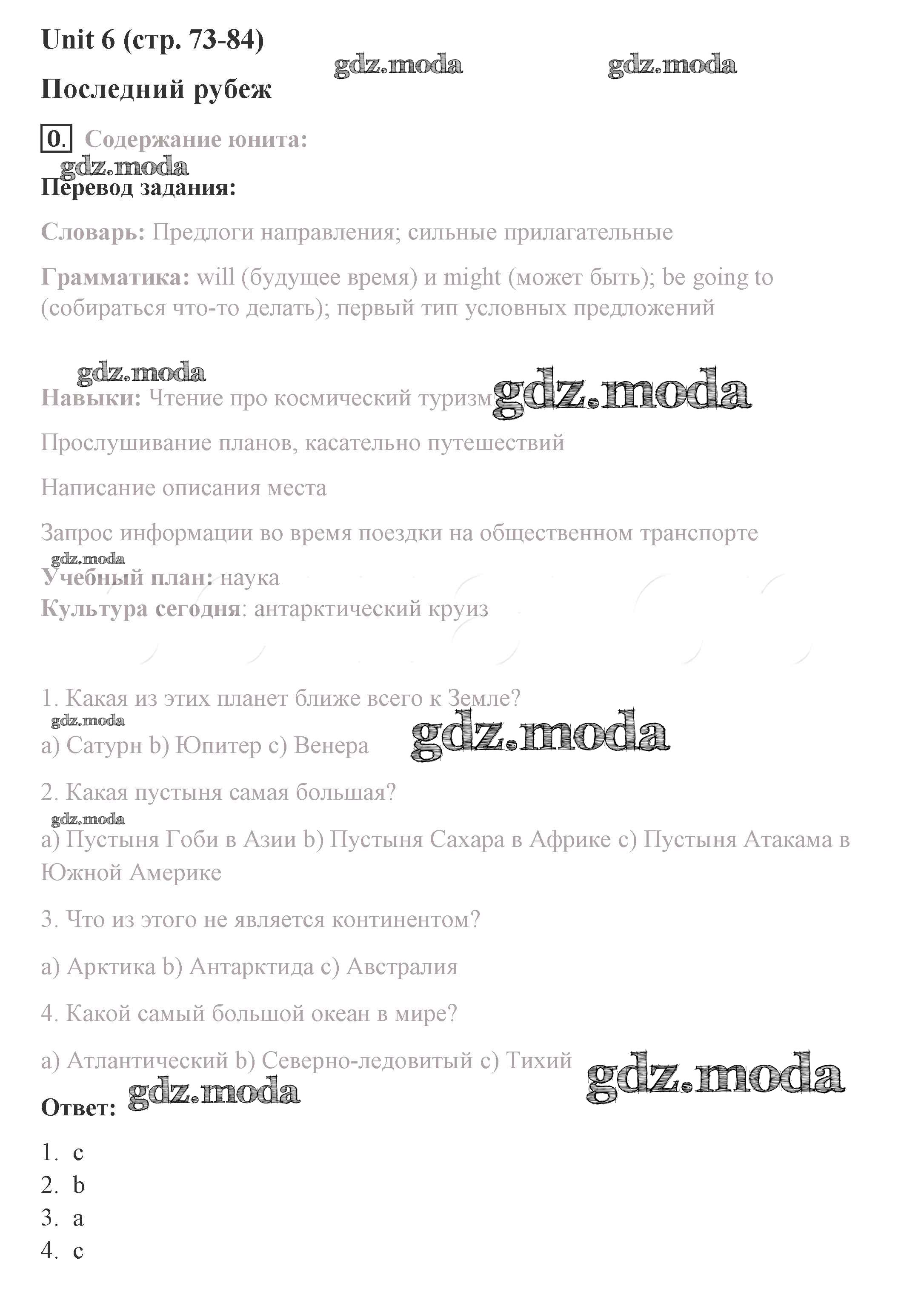ГДЗ решение к заданию № 73 Английский язык 8 класс Комарова Ю.А. Русское слово 2016 ФГОС бесплатно на гдз.мода!