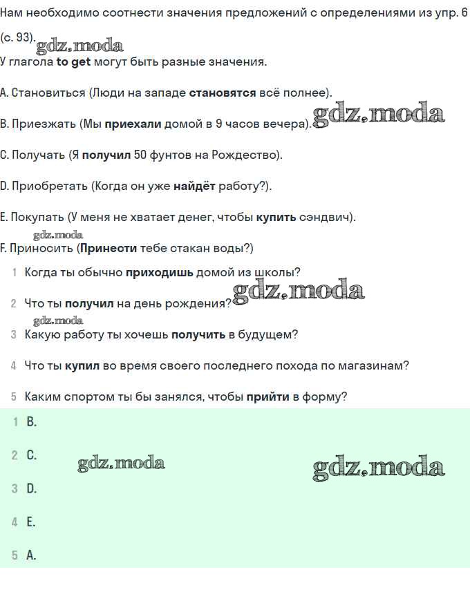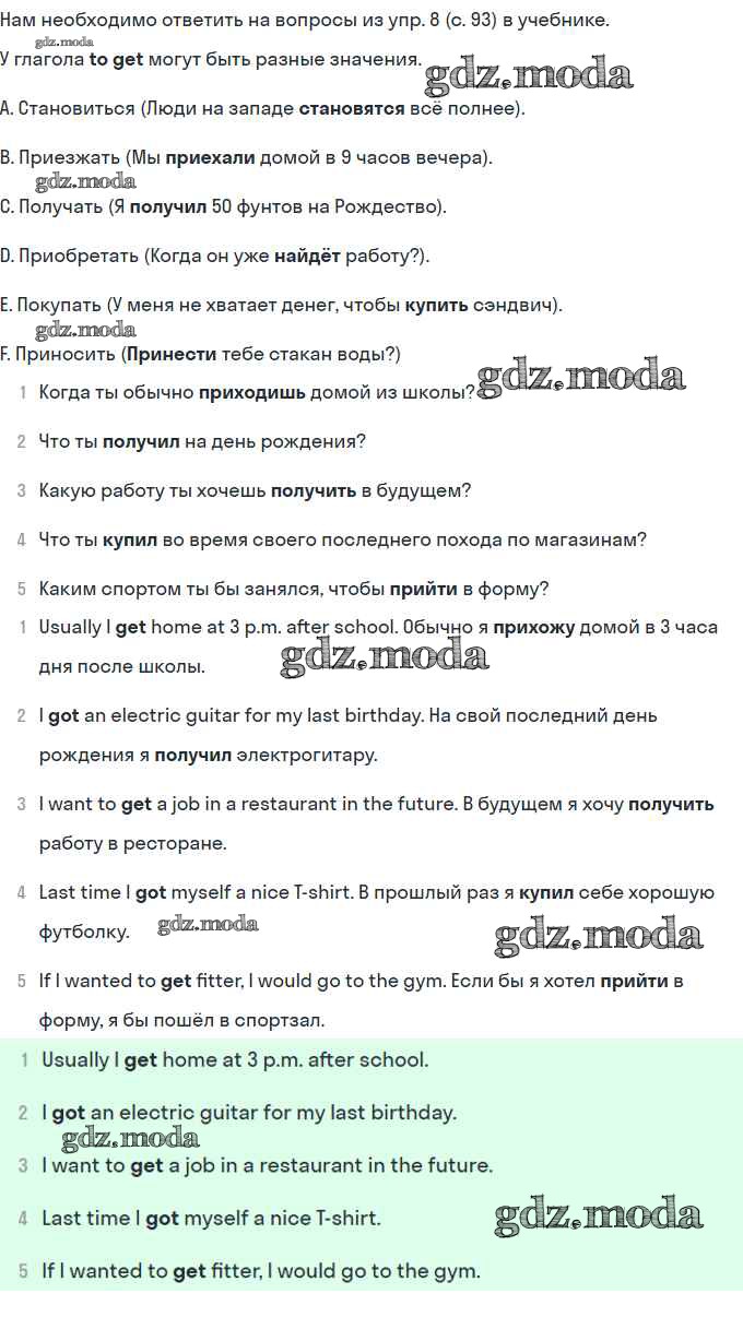 ГДЗ решение к заданию № 93 Английский язык 8 класс Комарова Ю.А. Русское слово 2016 ФГОС бесплатно на гдз.мода!