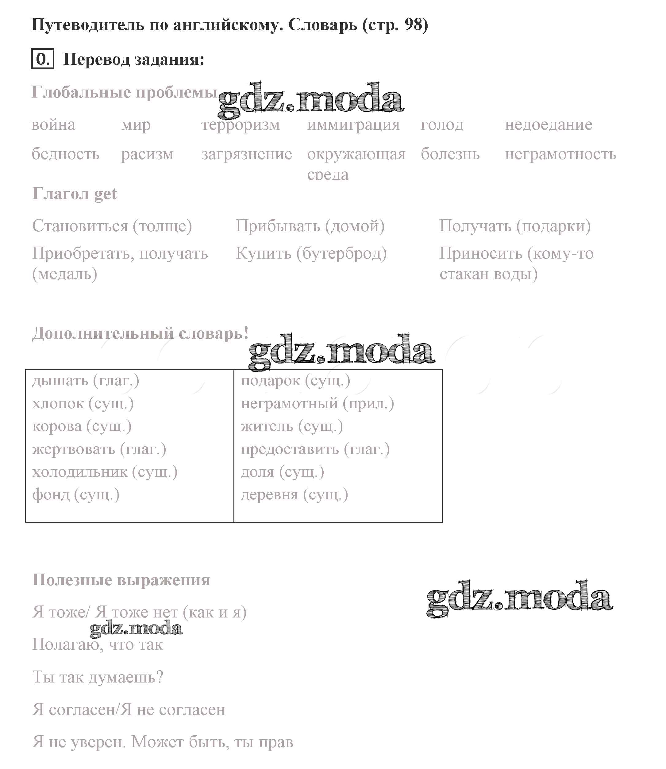 ГДЗ решение к заданию № 98 Английский язык 8 класс Комарова Ю.А. Русское слово 2016 ФГОС бесплатно на гдз.мода!