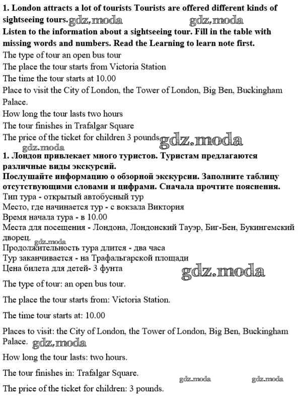 ГДЗ решение к заданию № 1 Английский язык 8 класс Кузовлёв В.П. Просвещение 2015 ФГОС бесплатно на гдз.мода!